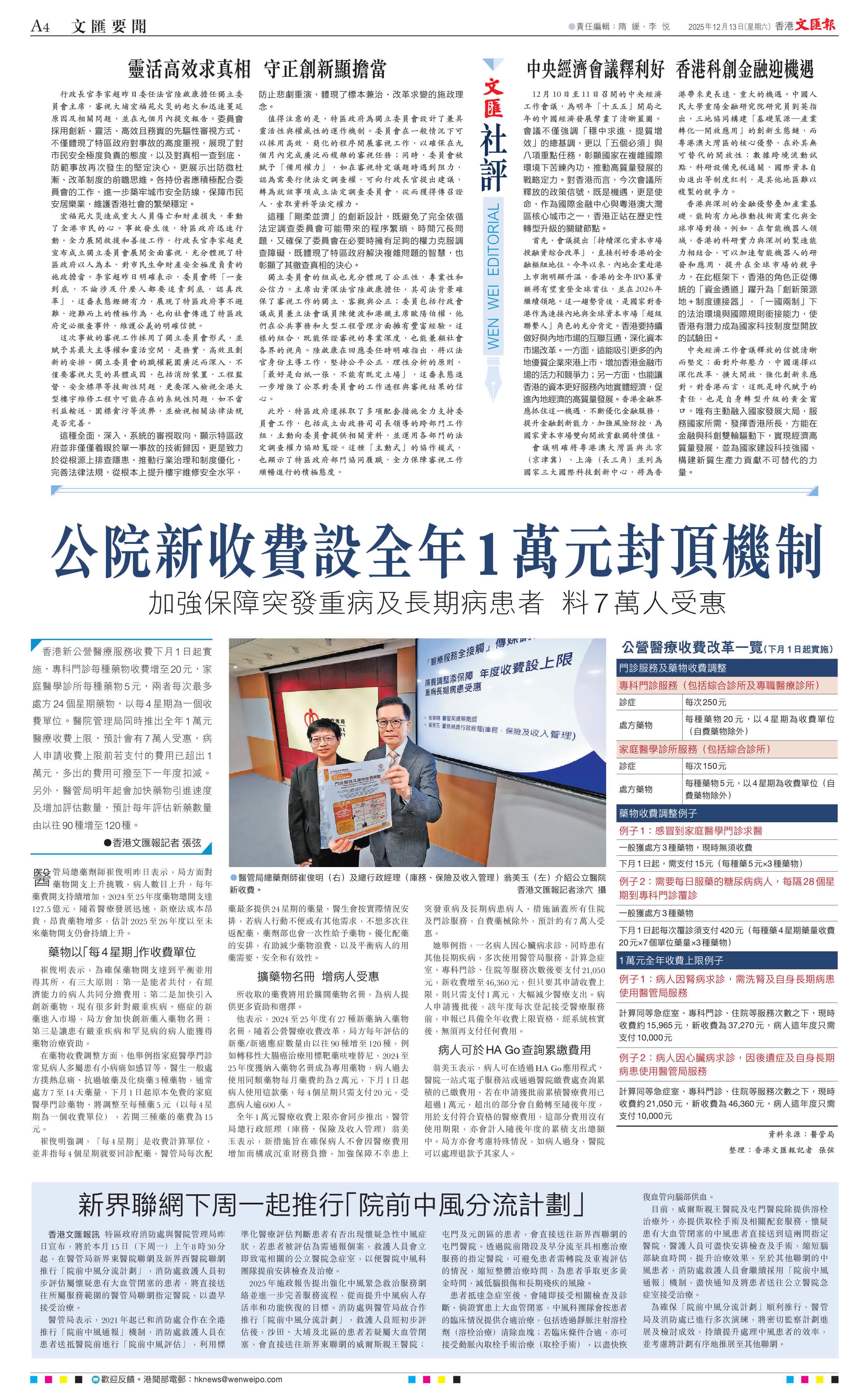全年1萬元醫療收費上限亦會同步推出,醫管局總行政經理(庫務、保險及收入管理)翁美玉表示,新措施旨在確保病人不會因醫療費用增加而構成沉重財務負擔,加強保障不幸患上突發重病及長期病患病人,措施涵蓋所有住院及門診服務,自費藥械除外,預計約有7萬人受惠。
