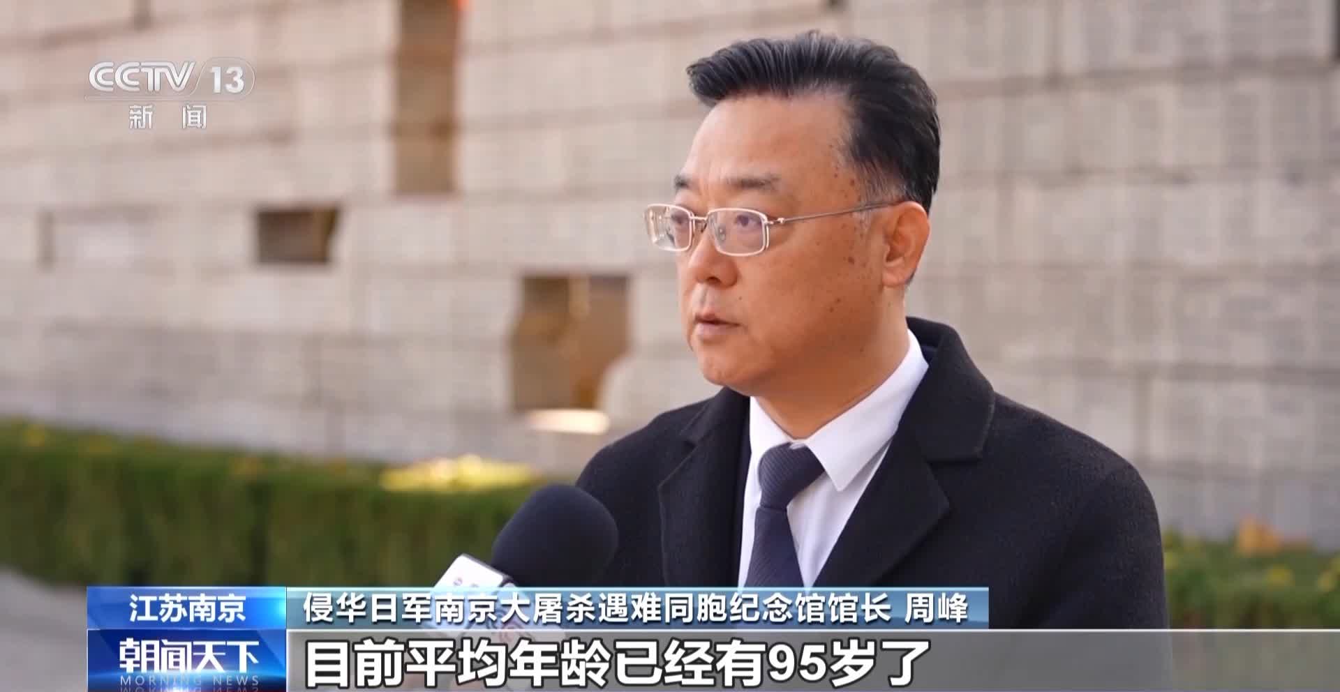 侵華日軍南京大屠殺遇難同胞紀念館館長 周峰:目前登記在冊的倖存者有24位,目前平均年齡已經有95歲了,最大的有102歲。我們對這些倖存者採取了一對一、一人一檔的保護,關愛他們的生活。我們還發動了醫院、街道、社區來關愛他們。