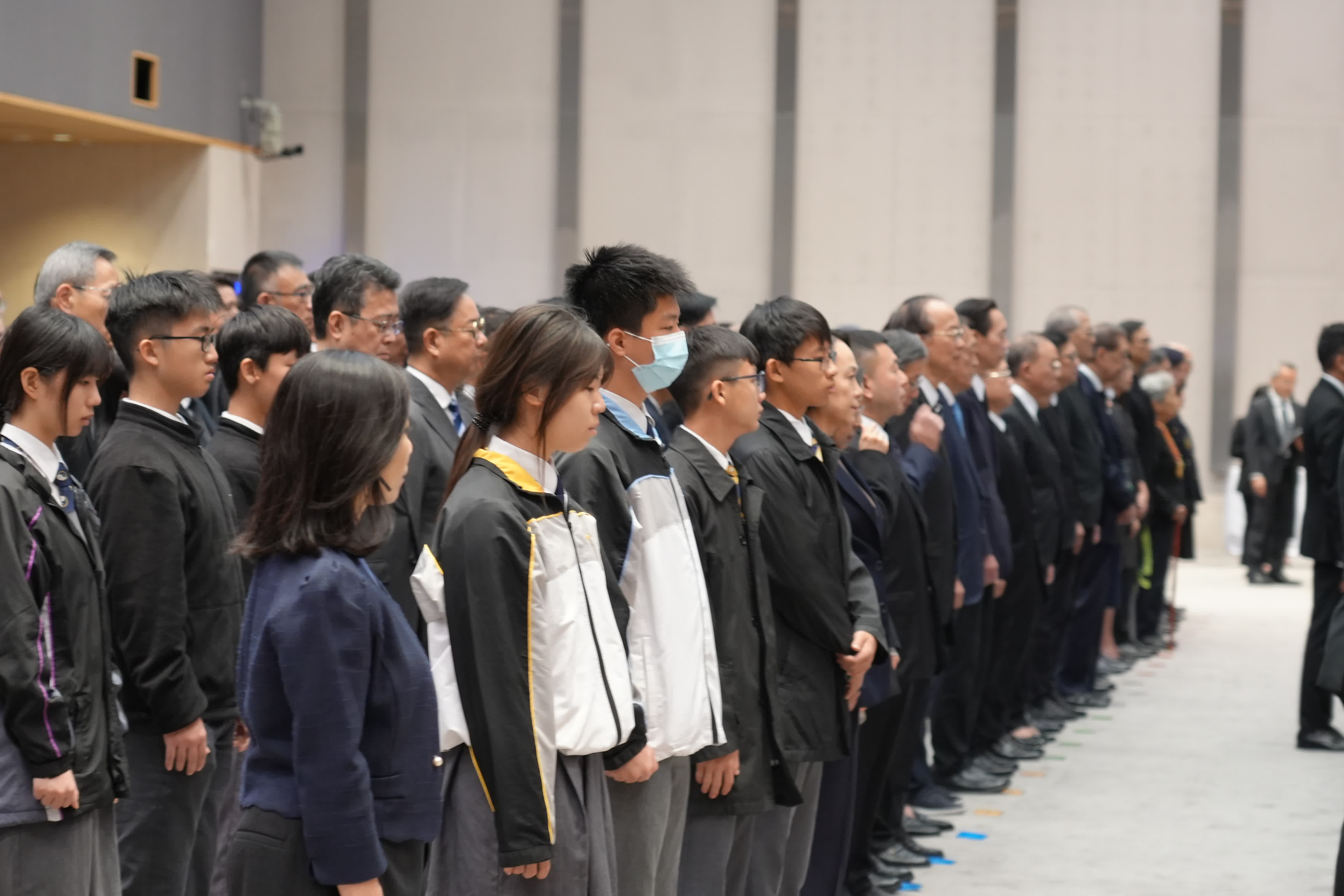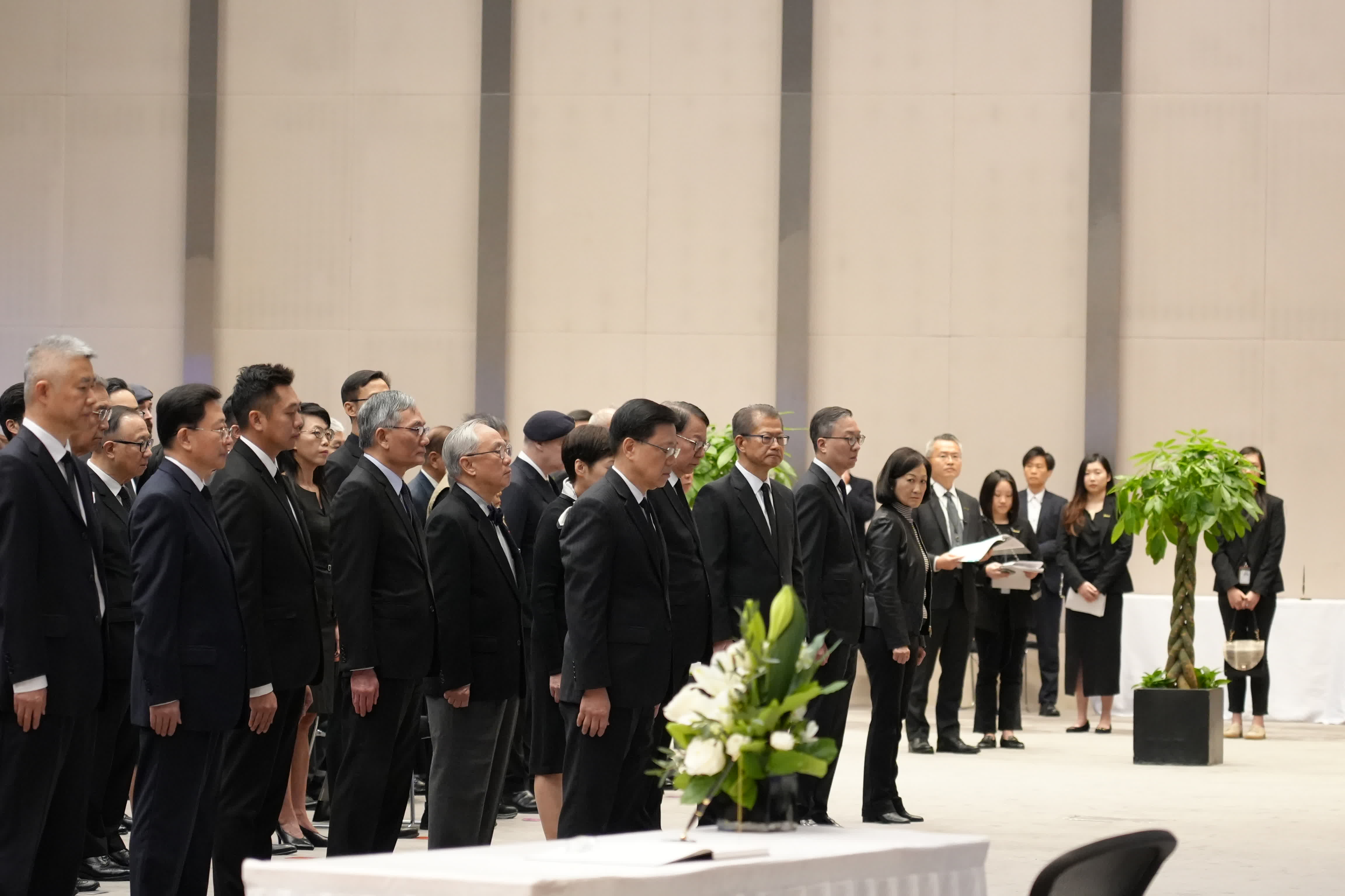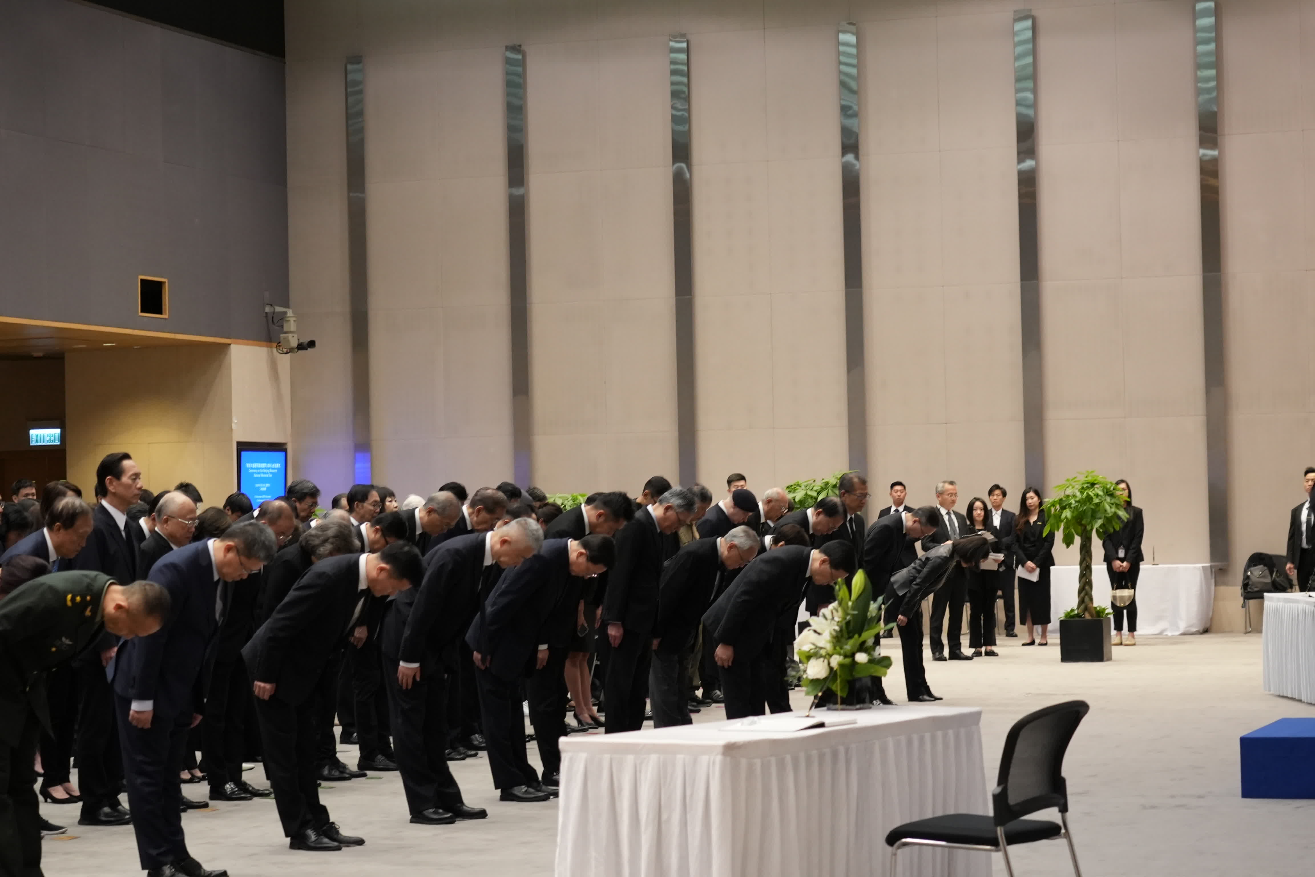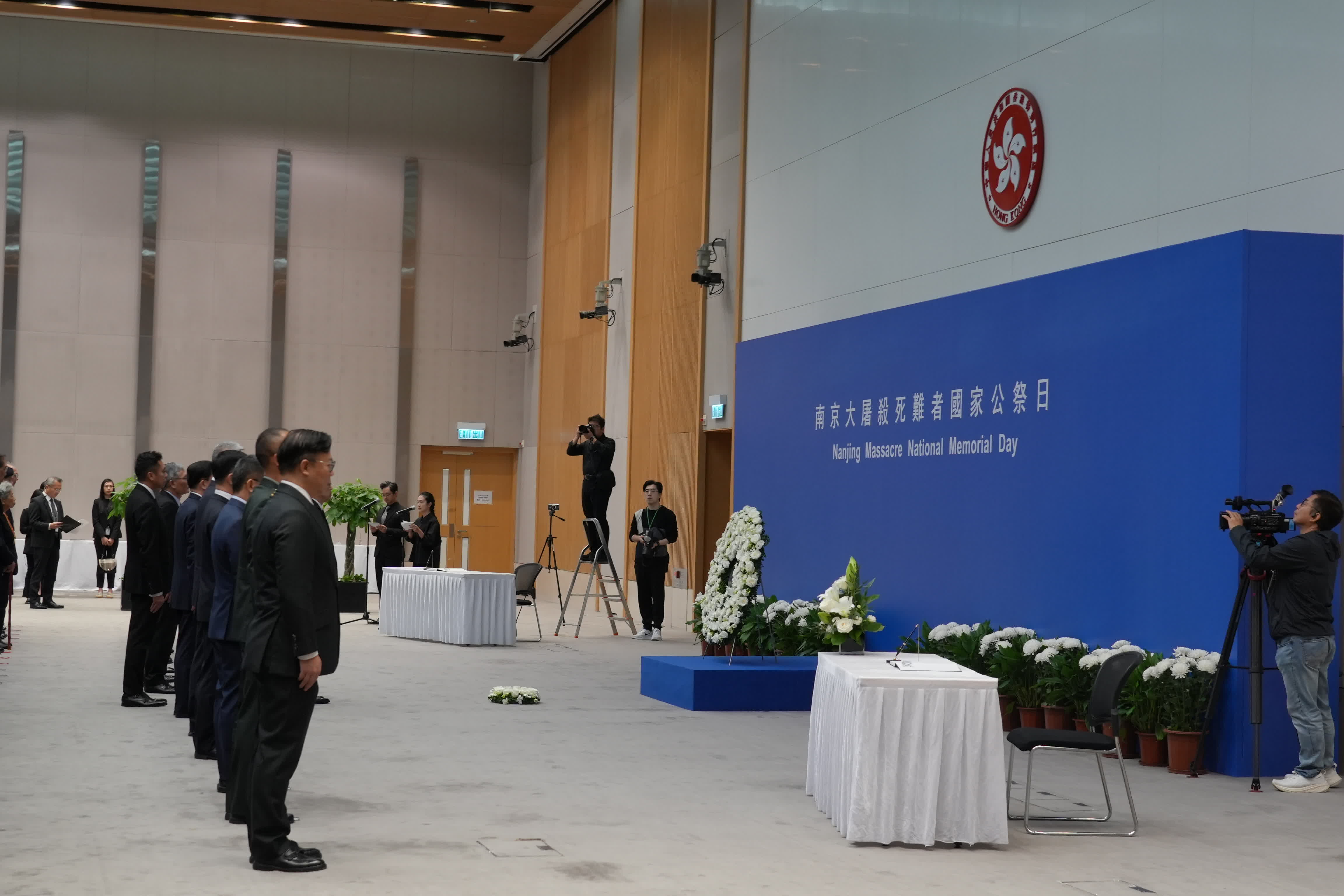 (大公文匯全媒體報道)今日(13日)是南京大屠殺死難者國家公祭日,特區政府舉行「南京大屠殺死難者國家公祭日」儀式。行政長官李家超、中央人民政府駐港機構代表、特區政府主要官員、司法機構代表、原東江縱隊港九獨立大隊老游擊戰士、退伍軍人代表及學生代表等出席儀式。
