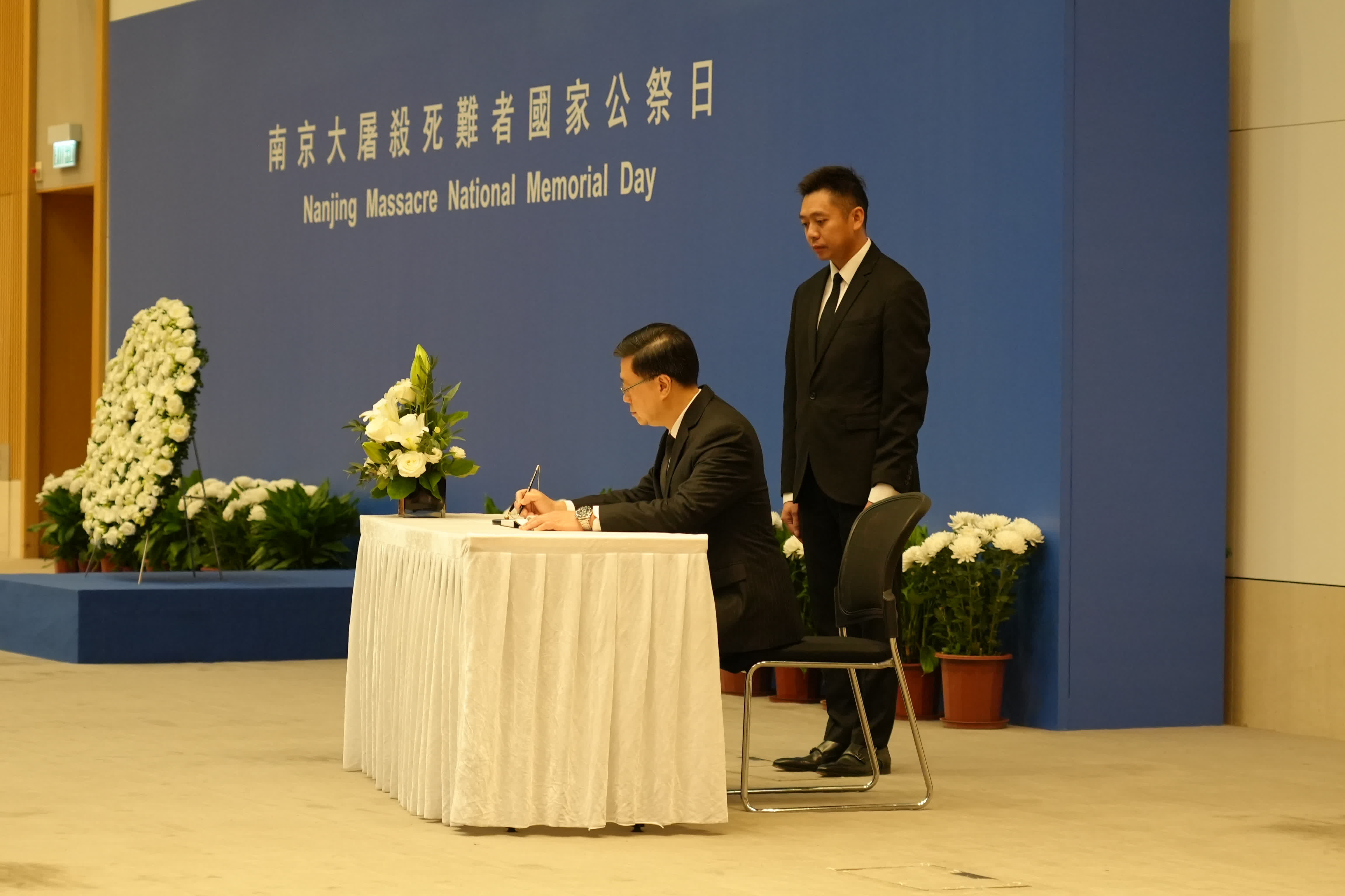 1937年12月13日,侵華日軍在南京開展長達40多日的大屠殺,30餘萬同胞慘遭殺戮。特區政府舉行「南京大屠殺死難者國家公祭日」儀式,表達了對死難同胞的悼念,亦展現捍衛人類尊嚴、維護和平的堅定立場。
