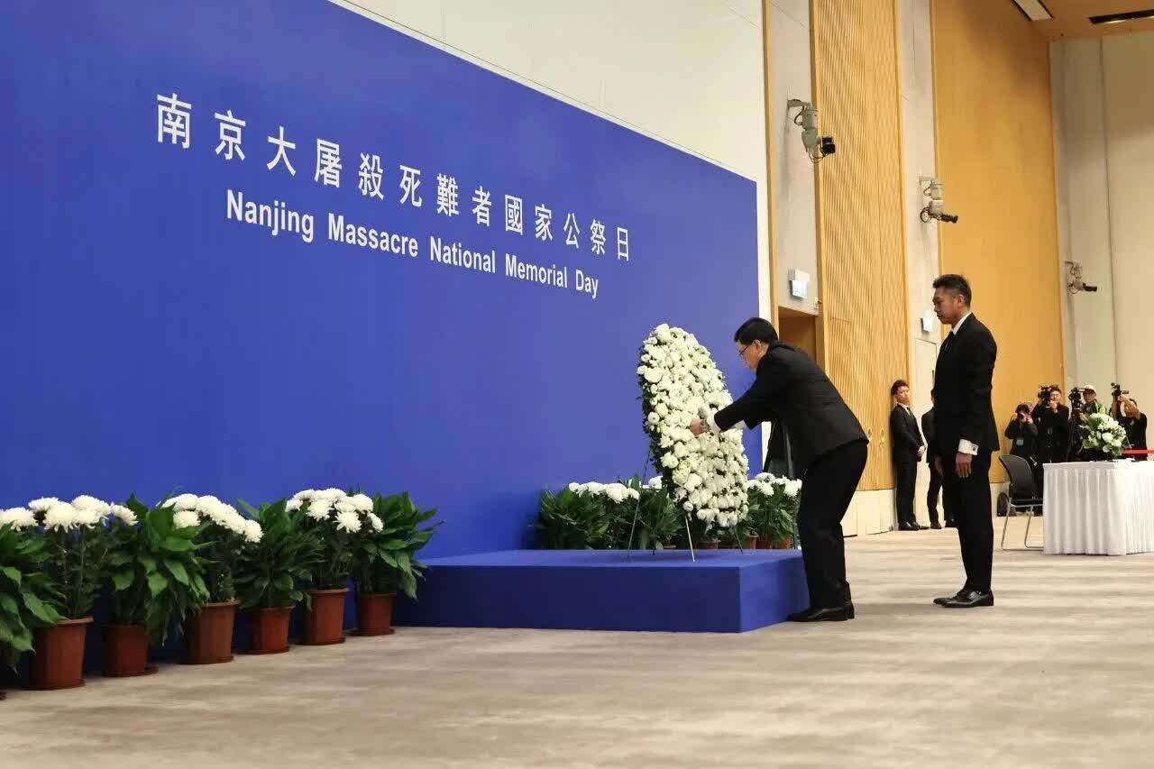 今天(12月13日)是南京大屠殺死難者國家公祭日。香港特區政府在政府總部舉行南京大屠殺死難者國家公祭日儀式,悼念南京大屠殺死難者和日本侵華戰爭期間的死難者,銘記中國人民抵抗日本侵略,緬懷先烈和遇難同胞。