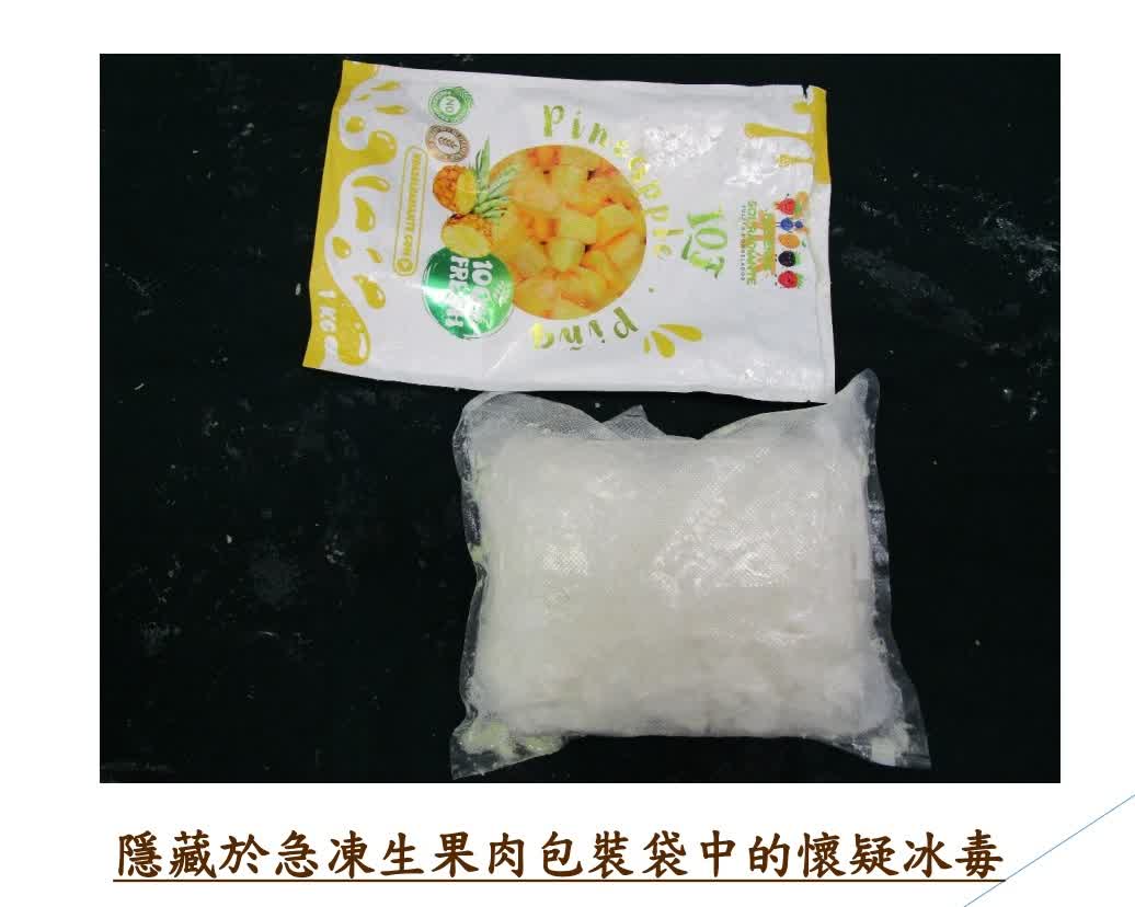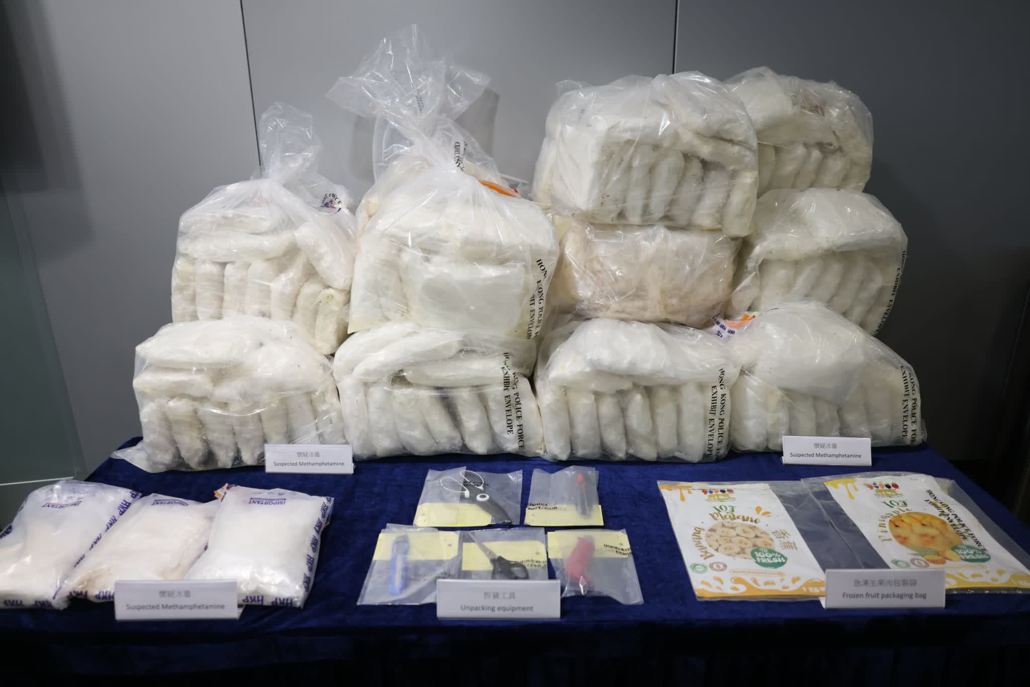 毒品調查科署理高級警司關駿軒表示,根據情報分析,警方相信有一跨國販毒集團,企圖在聖誕節前將一大批毒品,由墨西哥經空運偷運到香港,而通過連日的調查,人員鎖定了一批報稱是冷凍食品的可疑貨物。當該批貨物在12月8日到達香港空運中心後,人員隨即在海關人員協助下作出搜查。人員發現該批貨物總共有360個紙箱,而在紙箱內都裝着一些急凍的生果肉。在經過仔細搜查後,發現當中有70箱、共載有約242公斤的懷疑冰毒。