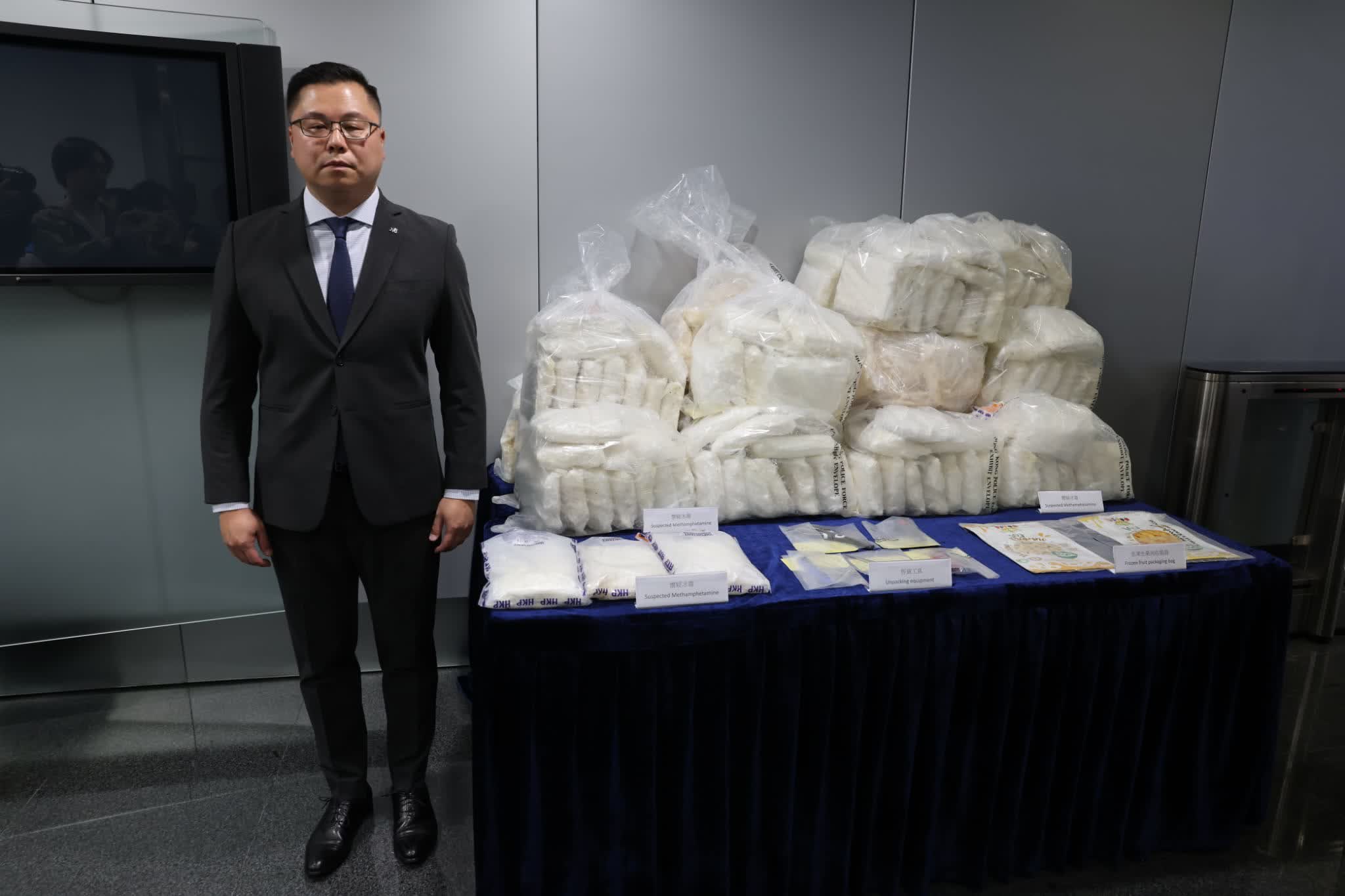 香港文匯報訊(記者 蕭景源)警隊毒品調查科一直致力以情報主導方式、以源頭打擊的方法阻止毒品流入本港。在本月8日至11日期間,毒品調查科進行一項打擊跨國集團的反毒品行動。行動中,人員成功拘捕4名男子,並檢獲約242公斤、市值超過8200萬港元的懷疑冰毒。今次檢獲懷疑冰毒的數量,是警方本年度至目前為止,檢獲懷疑冰毒最高的案件。