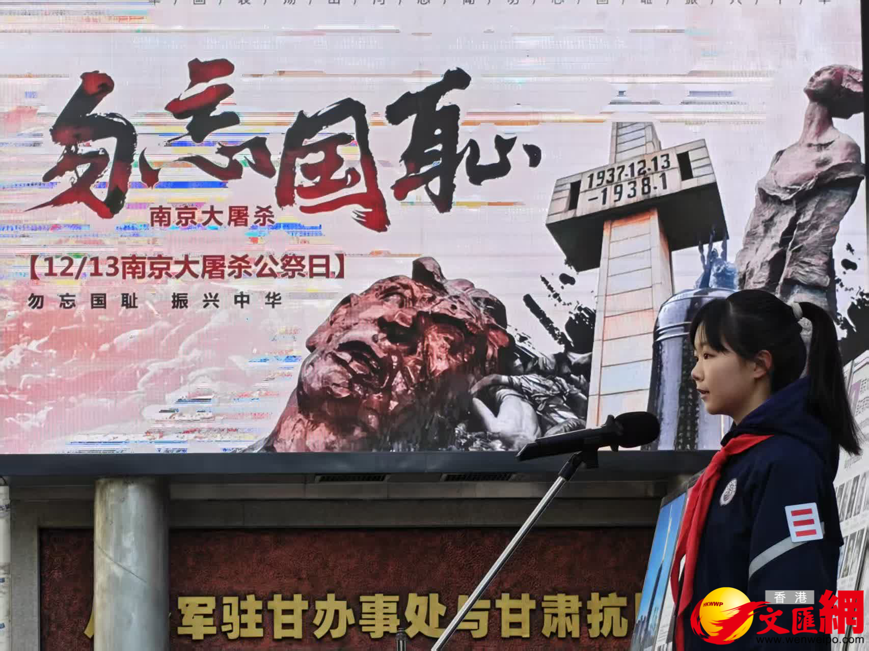 (香港文匯網記者郭濤 甘肅報道)12月13日是南京大屠殺慘案發生88周年。為緬懷慘遭侵略者殺戮的死難同胞及抗戰先烈,八路軍蘭州辦事處紀念館當日上午與侵華日軍南京大屠殺遇難同胞紀念館同步舉行公祭活動。抗戰老兵後代、烈士遺屬、青少年及社會各界代表百餘人齊聚蘭州,在這座抗戰時期的「西北戰略支點」城市,與南京跨越時空,共祭國殤。