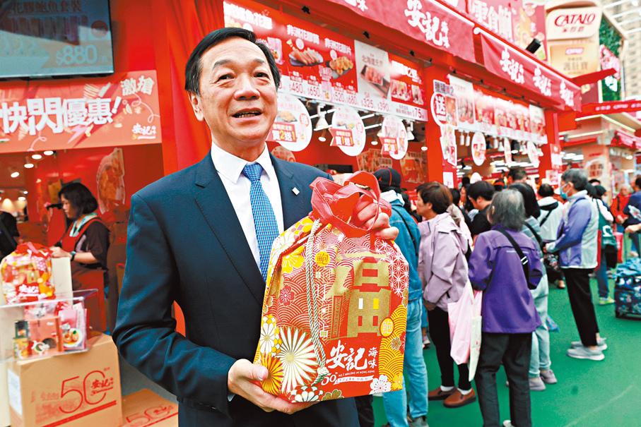 「經濟環境尚未完全復甦,我們願意降低利潤吸引人流,積累口碑。」潘權輝對香港文匯報表示,開展首個小時人流暢旺,其花膠、冬菇、臘味等傳統年貨以及創新零食產品頗受入場市民的青睞。