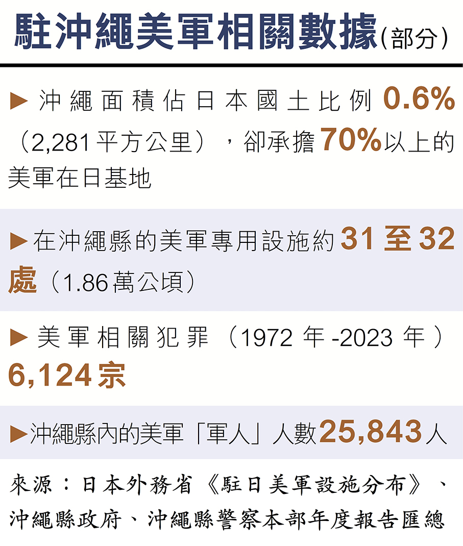 沖繩民間大使、演奏家西原圭佑向香港文匯報記者展示一張沖繩照片並指出,相較於嘉手納基地,位於沖繩南部的美軍普天間基地面積雖非最大,卻建設於居民區中間,周邊學校密集。民眾出行需繞行一大圈,極為不便,美軍卻可以直接穿行。每天從早到晚轟鳴的飛機起降聲,嚴重影響正常的教學與生活。當地還多次發生直升機墜落事件,「有一次直接墜落在一所學校裏」。