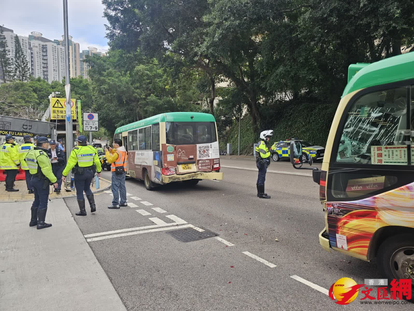 涉事兩輛小巴分為23號線和28S線,當中28S線小巴損毀較嚴重,車頭擋風玻璃爆裂、泵把損毀、左車頭燈鬆脫,至於涉事的士則告車尾損毀。