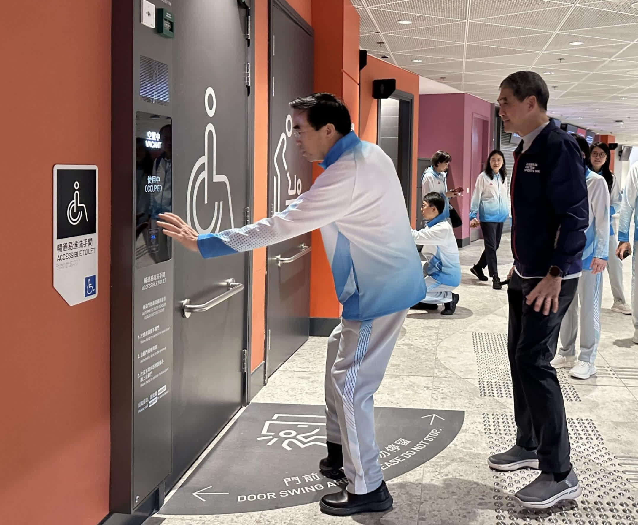 啟德體育園總監(策略發展)鄧竟成介紹園區無障礙設計及通達設施時表示︰「啟德體育園在設計規劃上充分考慮不同人士的多元需求,採用『通用設計』原則,設施不僅符合建築標準,更在多項配置上優於法定要求,致力提升暢達度及連貫性。」
