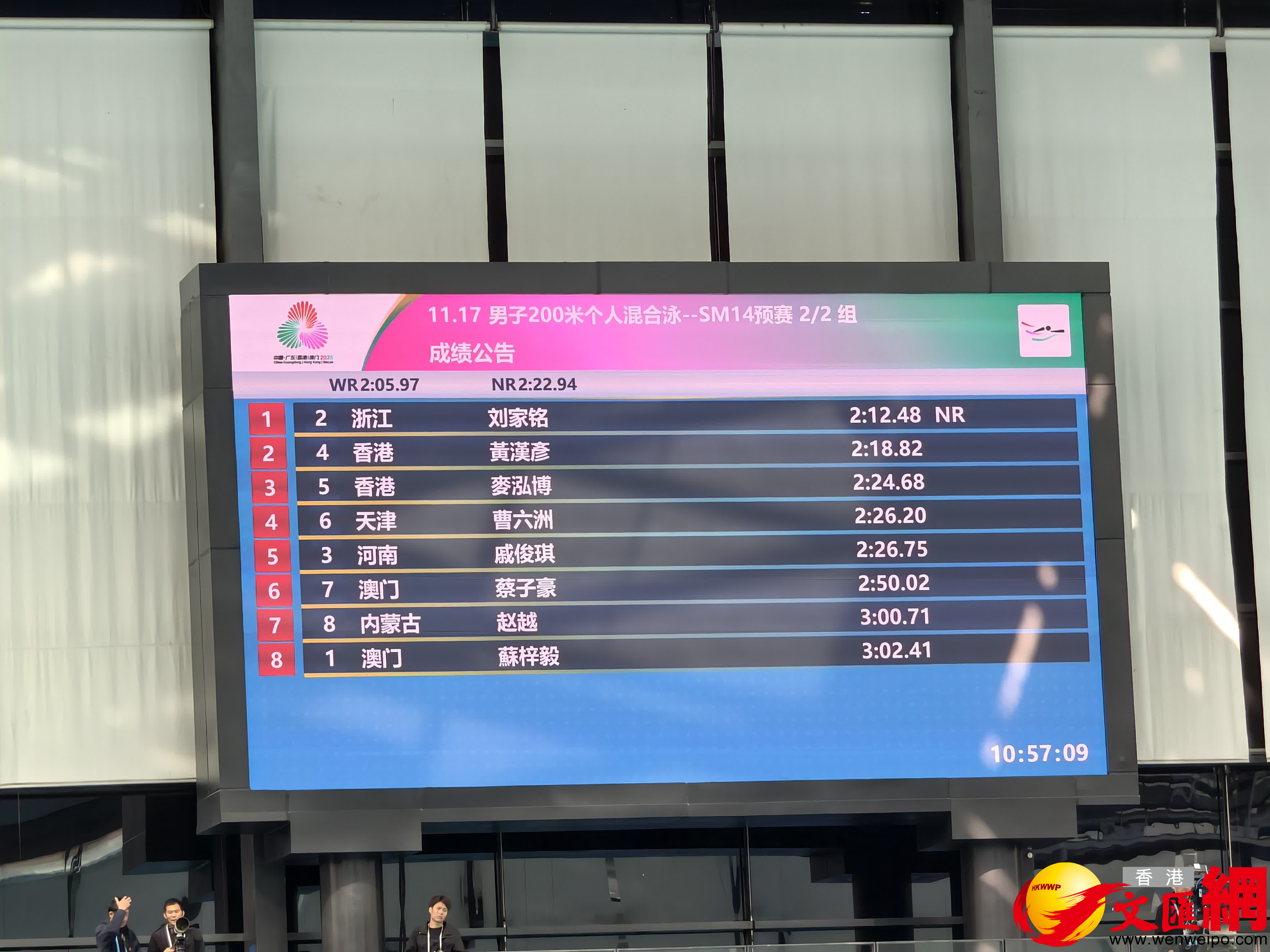 (香港文匯網記者 胡永愛、李薇、石華)12月14日,殘特奧會游泳項目進入收官日,在上午舉行的200米混合泳SM14級決賽中,港隊三人進入晚上決賽。小組第一組比賽中,洪泳朗以2分23秒15的成績排在小組第一。小組第二組,黃漢彥游出2分18秒82的好成績,排名在浙江隊劉家銘之後、取得小組第二,破全國紀錄。麥泓博則以2分24秒68的成績排在小組第三。