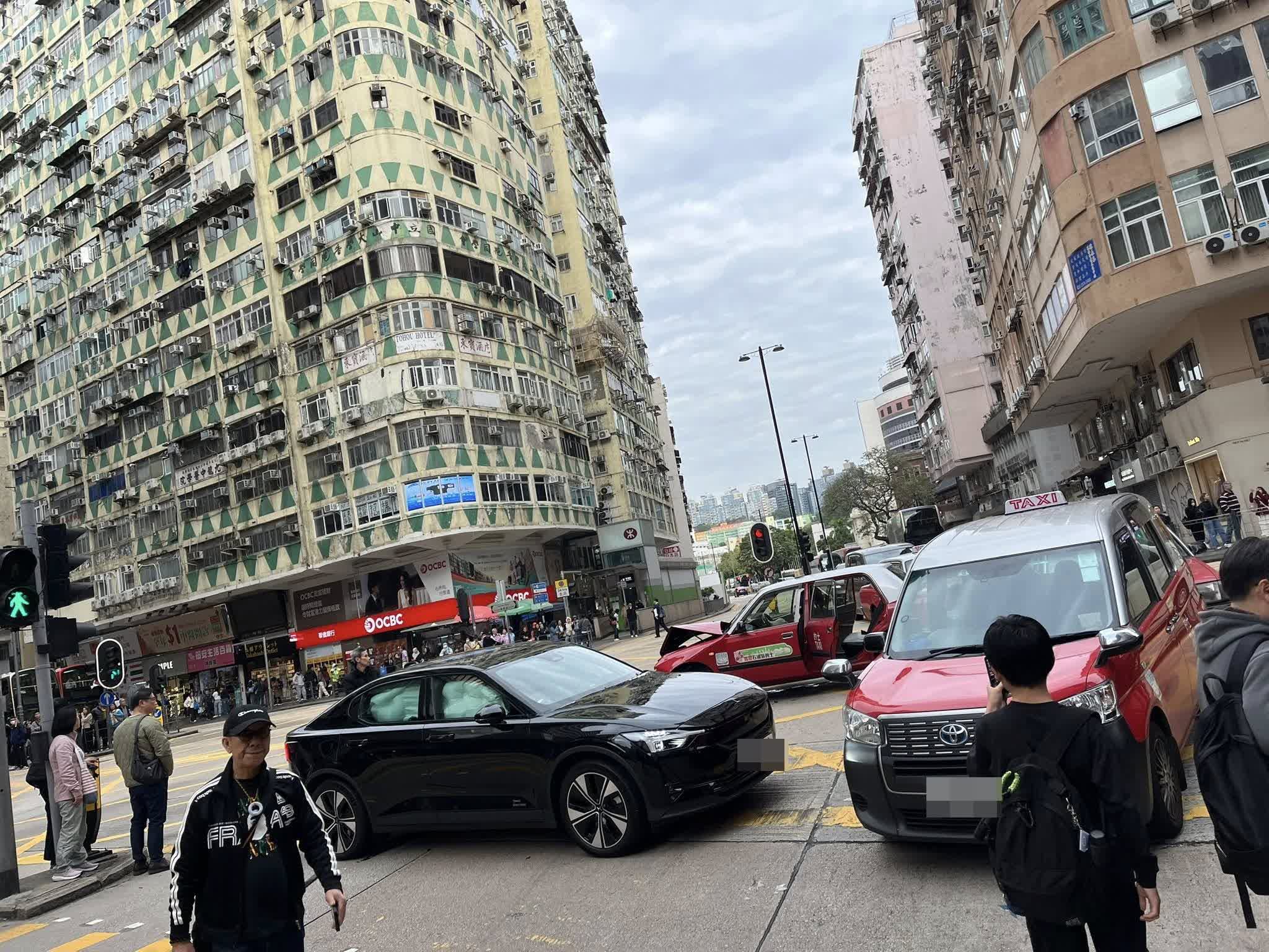 香港文匯報訊(記者 蕭景源)佐敦發生交通意外。今日(14日)下午3時許,一輛私家車及一輛的士,在駛至佐敦彌敦道及佐敦道交界,懷疑收掣不及發生相撞。