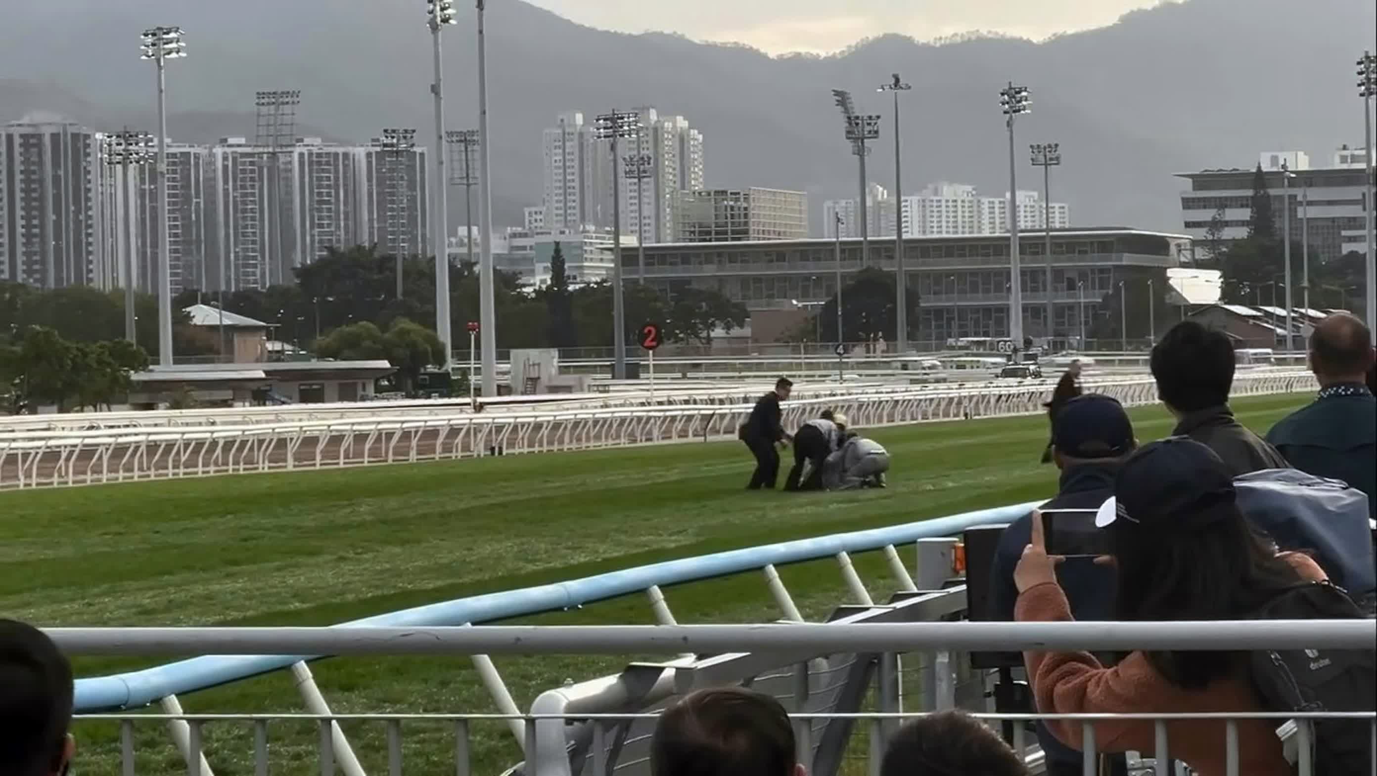 警方指,機動部隊人員今日在沙田馬場執勤期間,一名男子涉嫌衝出賽道及作出擾亂公眾秩序的行為。經初步調查後,人員拘捕該名59歲本地男子,涉嫌「公眾地方內擾亂秩序行為」。