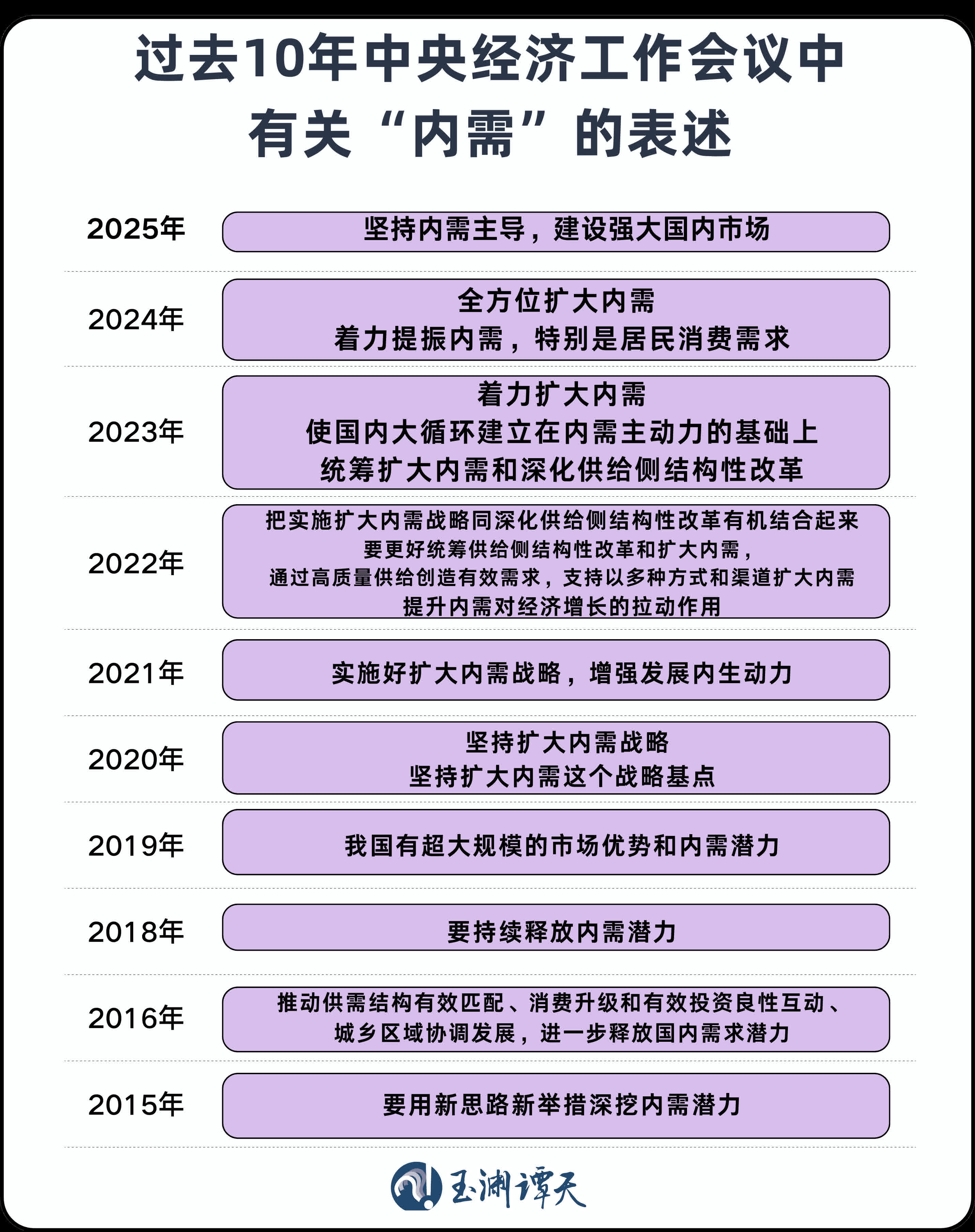 正因如此,擴內需被列為明年八大任務之首。背後傳遞的意味很明顯,立足國內,固本培元,苦練內功。