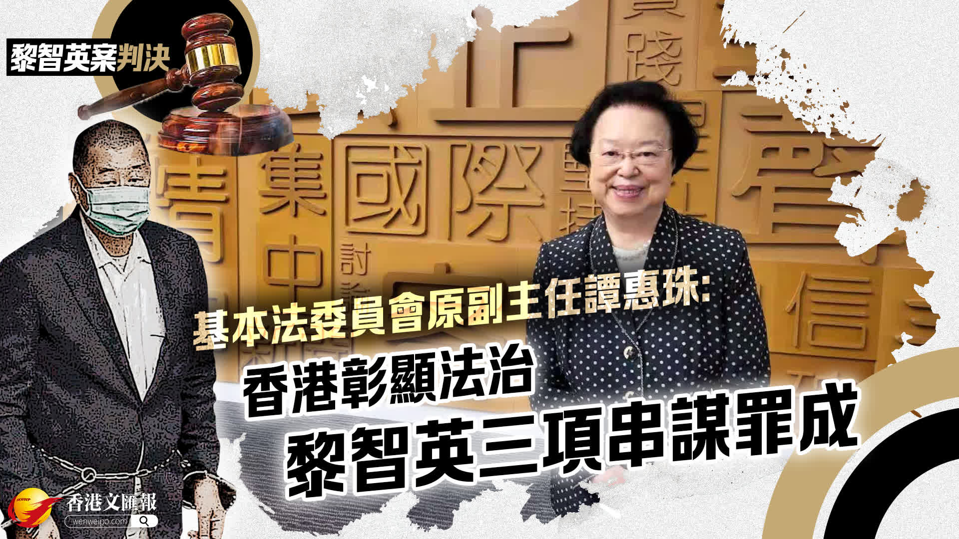 香港文匯報訊(記者 蕭景源)基本法委員會原副主任譚惠珠表示,黎智英三項串謀案經過兩年審判,今天被高院判三項罪名均成立,現押後待處理求請和判刑。該案審判過程中,有多位「從犯」證人作供,大量公開刊登過的刊物,及黎智英本人的公開言論及他和外國政客的活動及發言。黎公開要求美國政客和政府高層制裁中國及香港特區等,證據確鑿,美國等政客試圖施壓,干預香港司法獨立,這一切事情,香港人卻看得清楚。