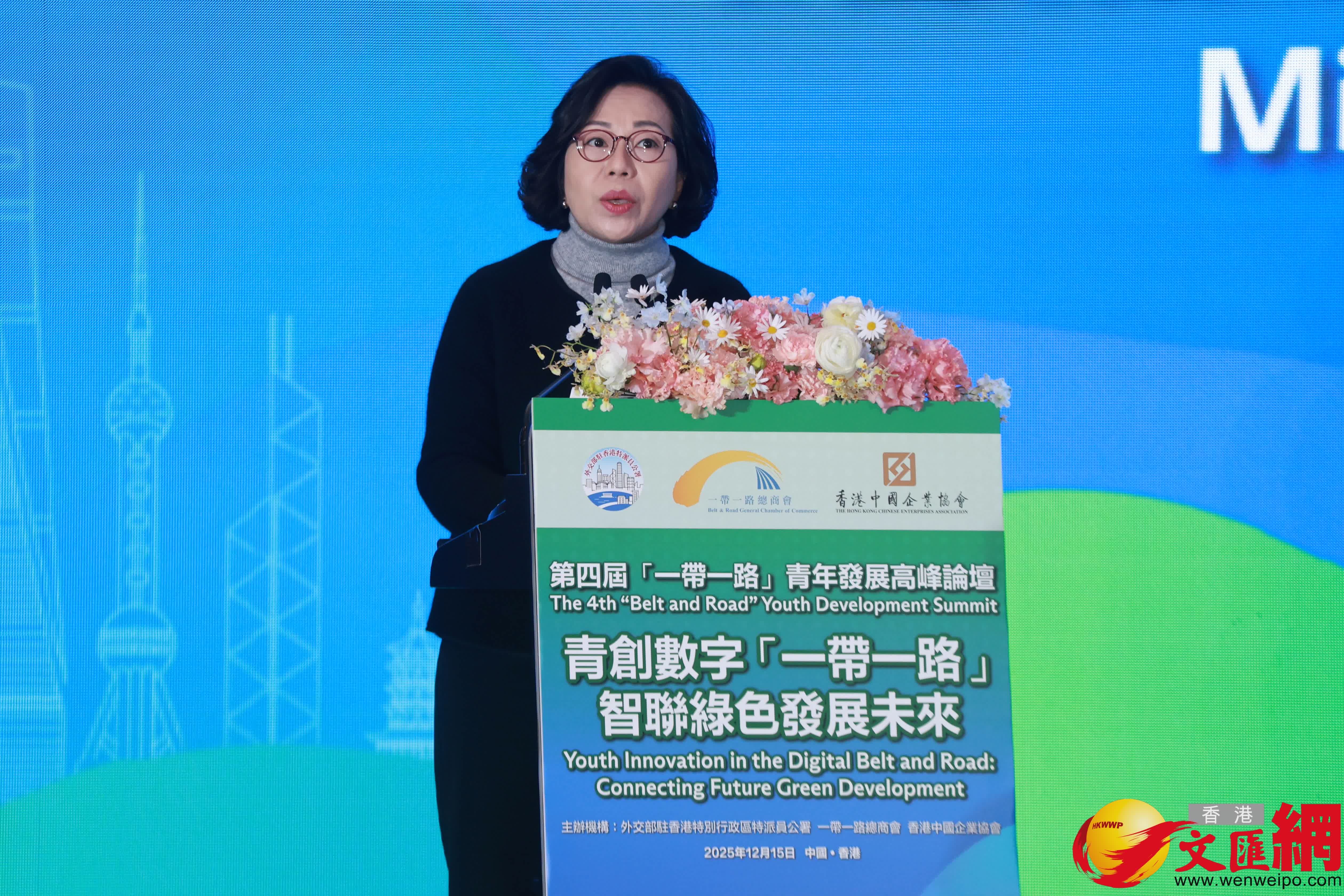 外交部駐港特派員公署副特派員花有致辭時表示,「一帶一路」青年發展高峰論壇的規模與影響力持續擴大,成為香港助力共建「一帶一路」國家青年交流與民心相通的重要平台。