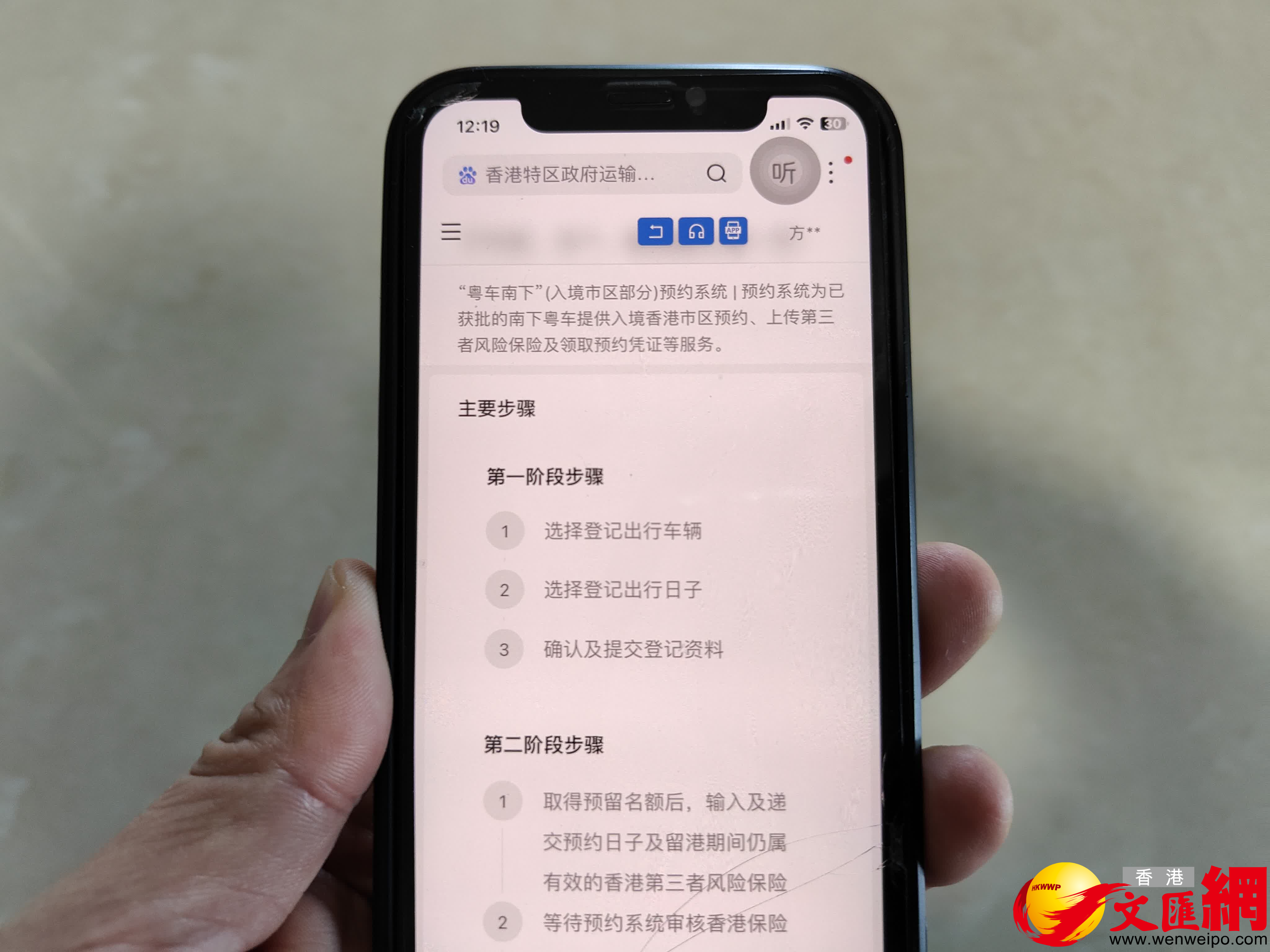 (香港文匯網記者 方俊明)「粵車南下」進入香港市區政策將於12月23日正式實施,香港特區政府運輸署「粵車南下」預約系統今天(15日)上午8時半起接受預約。有廣東車主告訴記者,目前他已完成驗車及相關牌證等手續,進入預約出行階段,他計劃預約25日駕車帶家人赴港體驗不一樣的聖誕節氛圍。
