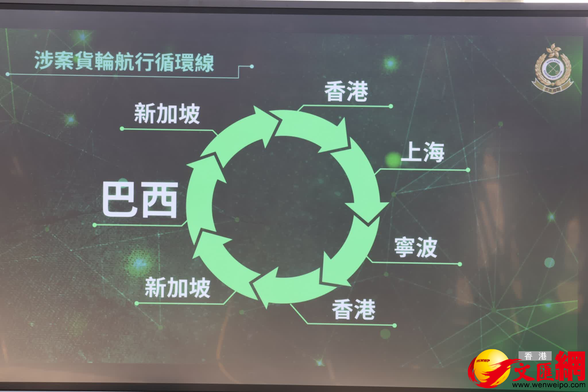 海關毒品調查科高級監督劉玉龍表示,香港海關早前與內地海關開展情報交流工作,得悉販毒集團可能會利用大型貨船偷運毒品,有別於過往把毒品收藏於貨櫃的做法,而是把毒品收藏於極隱蔽的位置,因此海關進行了大量情報搜集及分析工作,包括了解不同貨船的結構、行駛路線以及毒品來源地等。經長時間分析後,海關鎖定了一艘大型的目標貨船,該貨船總長度有333米,闊48米,貨船由巴西開出,途經星加坡、上海、寧波及香港,關員隨即對該貨船展開全天候24小時監控。至今年11月4日,該貨船進入香港水域後,香港海關船隊押送該艘貨船至指定地方進行清關及搜查,經詳細檢查,人員在該船船底的吸水口檢獲大量毒品,經點算後發現有417公斤可卡因,同時拘捕船上兩人。據悉,被捕兩人分別為45及37歲印度籍船員。