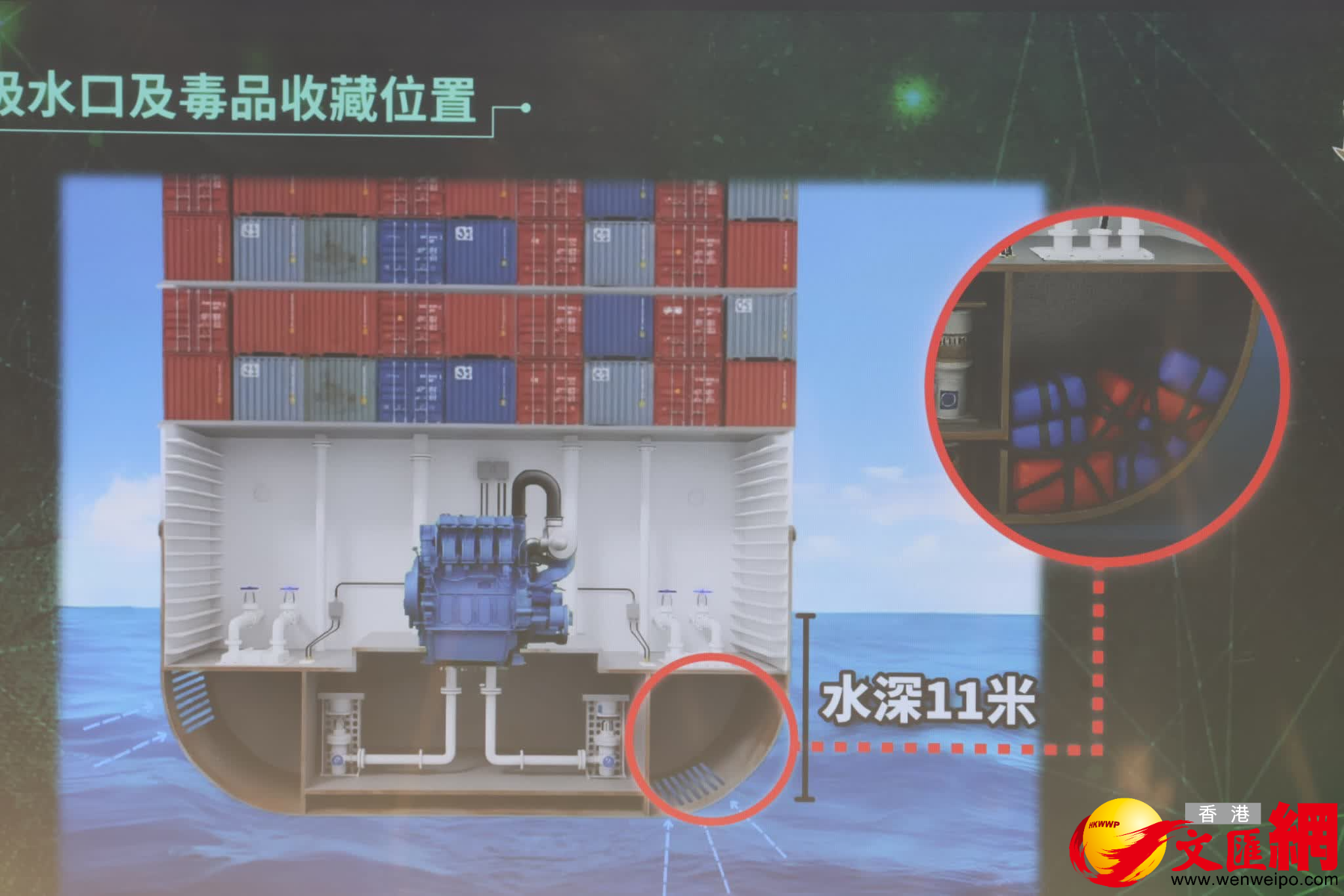 劉玉龍補充,涉案貨船由巴西出發,據海關了解,可卡因的主要來源地主要為南美國家或地區,因此不排除販毒集團預先把大量毒品收藏於船底的吸水口,另一方面,貨船會途經多個地方,以一個循環線的操作航行,因此估計販毒集團利用此艘大型貨船,作為大型的海上流動毒品儲存倉,嘗試把毒品分銷至不同地區。他形容船底藏毒手法極之罕見,一般船隻俱有吸水口位置,主要功用是抽取海水,以冷卻船上的引擎,又或供應船上其他系統使用,例如衞生系統。在本案中,該吸水口極之隱蔽,在水深大約11米處,而出入口極之狹窄,因此不排除需要專業潛水人員始能前往有關地方。而犯罪集團選擇把毒品收藏於吸水口,原因是相信該處比較安全,可以掩人耳目。