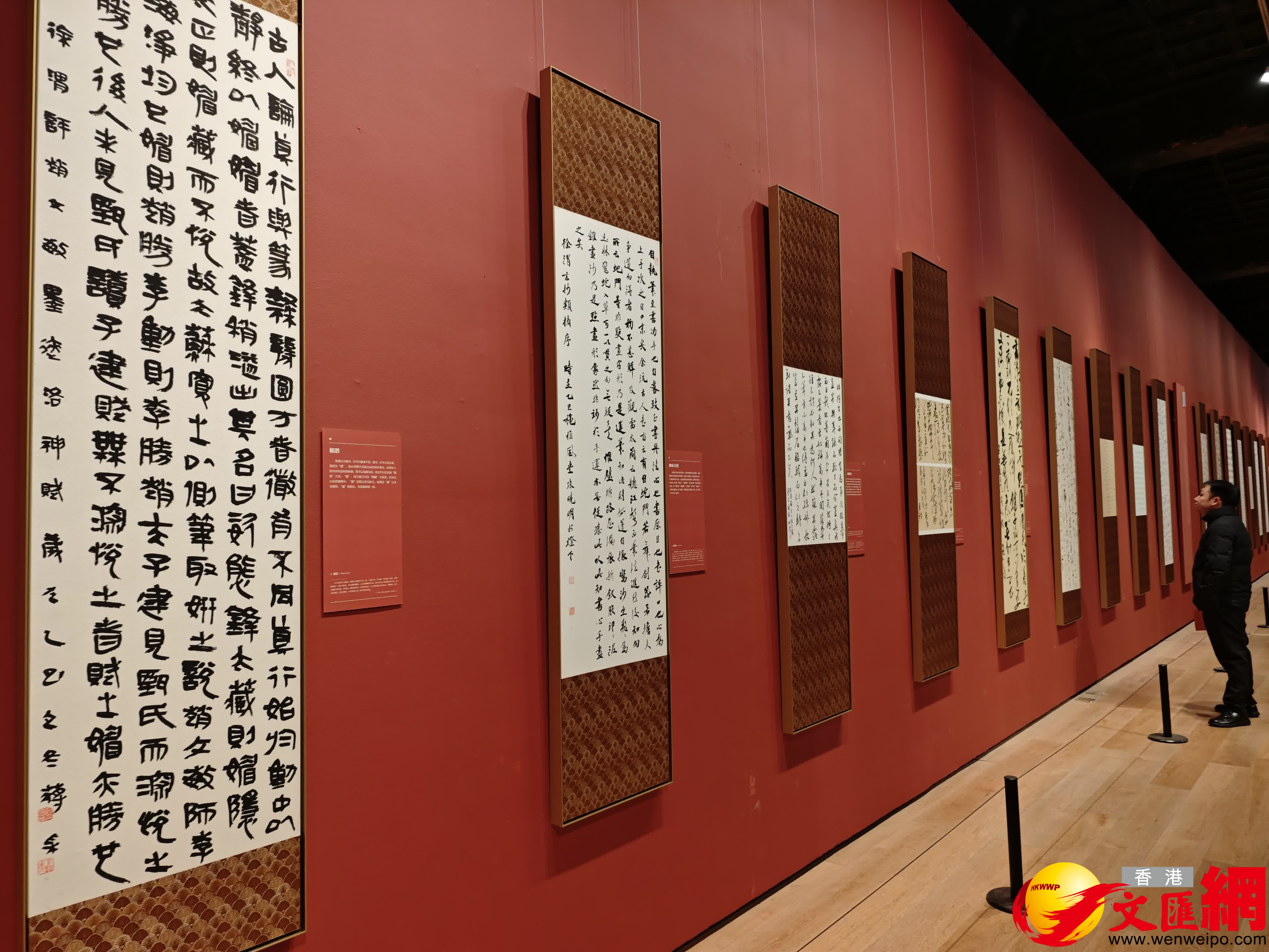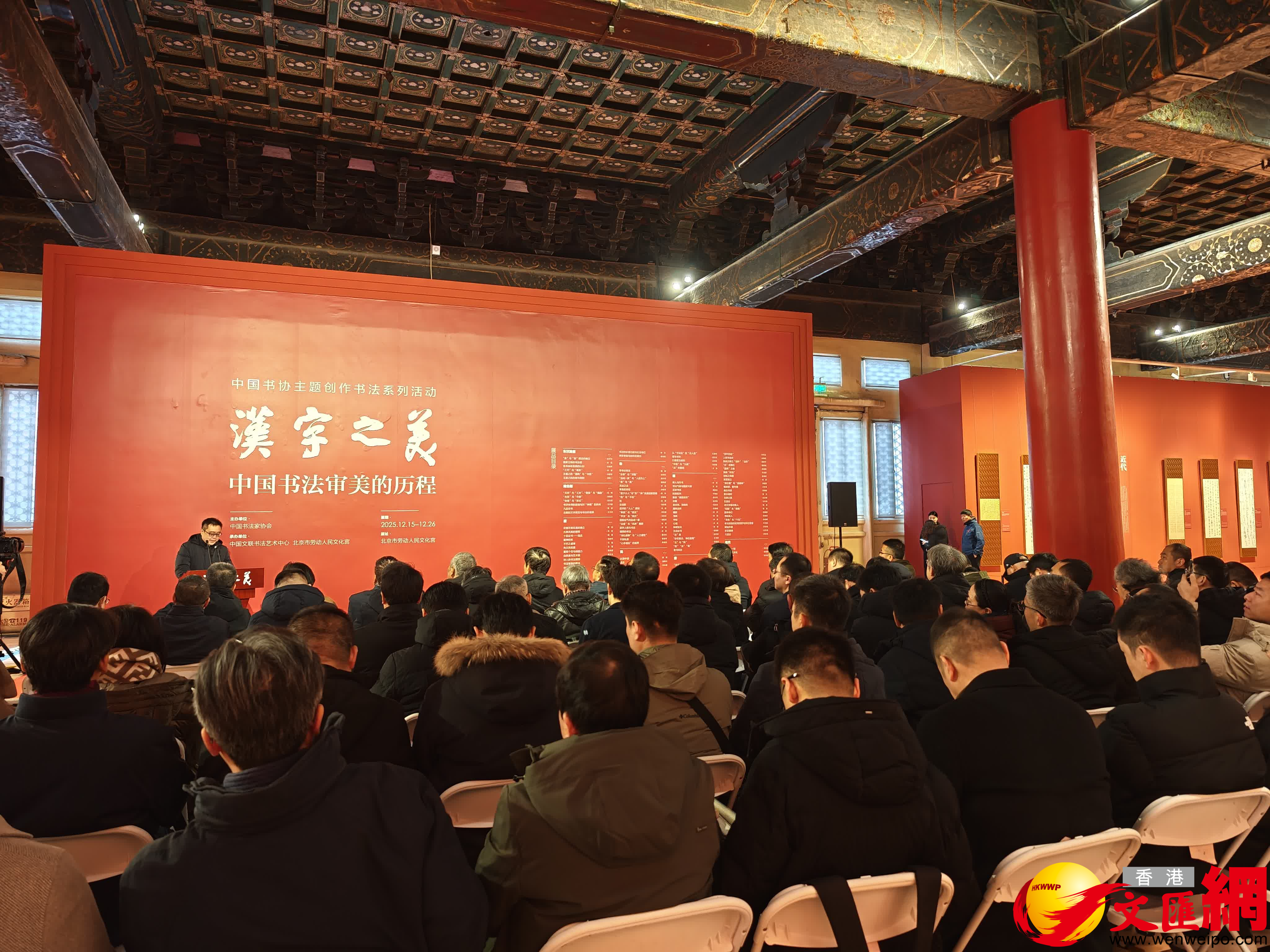 (香港文匯網記者 江鑫嫻 北京報道)由中國書法家協會主辦的「漢字之美:中國書法審美的歷程」書法展15日在位於北京市勞動人民文化宮內的太廟藝術館開幕,16日起正式向觀眾開放。今次展覽共展出99件書法作品,所有作品均以歷代書論為書寫內容,由近三屆全國青年書法創作骨幹高研班學員創作完成。據介紹,展覽以經典書論名句為載體,通過「核心釋義」「精要解讀」與「筆墨呈現」相結合的方式,構建起多維一體的展陳敘事,生動勾勒出中國書法審美話語的歷史脈絡,旨在為觀眾提供兼具學術深度與藝術感染力的審美體驗。