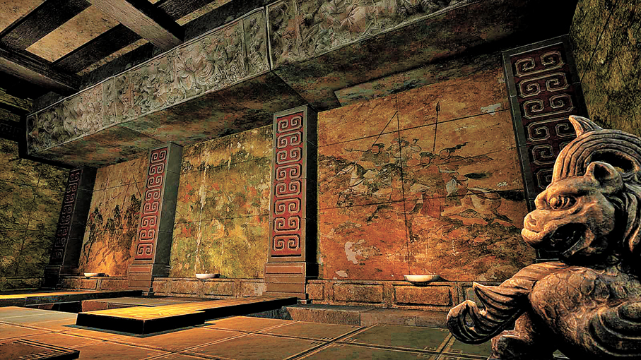VR作品如何讓「歷史」活起來?蘇翼飛以《隱秘的秦陵》和《甲骨風雲》這兩部作品舉例道:「我們分別邀請了中國秦漢史研究會秘書長張欣及殷墟考古隊原隊長唐際根擔任顧問,創作時增強角色的代入感。如在《唐宮夜宴》中觀眾扮演文物修復實習生,穿越回唐朝,乘飛毯參加夜宴,這是視頻和圖文無法給予的極致感受;線上線下要聯動做加法,在VR遊覽的過程中,觀眾可以拿起並放大觀賞『武則天金簡』,這件文物的實物正收藏在河南省博物院。這就形成了『看完實物體驗VR』或『體驗完VR去尋找實物』的1+1>2的整體體驗場景,極大地增強了文旅吸引力。」