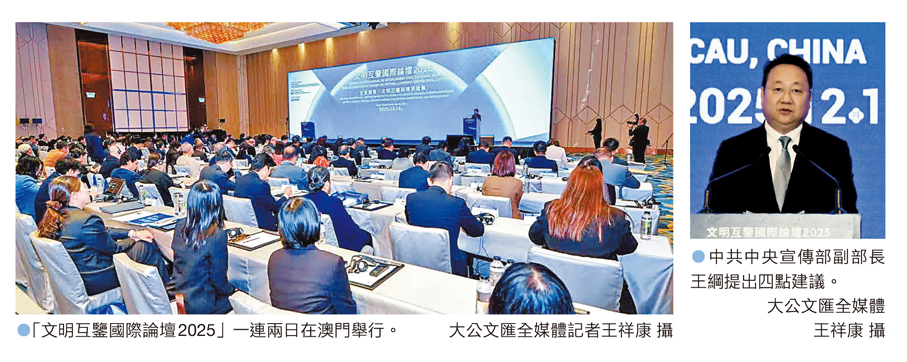香港文匯報訊 由澳門特區政府主辦,文化局承辦,中國社會科學院中國歷史研究院支持的「文明互鑒國際論壇2025」昨日在澳門揭幕,論壇一連兩日匯聚全球近10個國家逾50位政府部門代表、國際組織代表、頂尖專家學者,圍繞「文明互鑒與傳承發展」的核心主題,展開逾20場專題演講和學術交流。