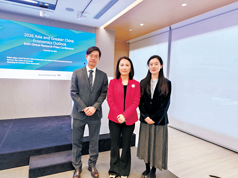 另外,美國銀行昨舉辦亞太及大中華區經濟展望記者會,該行全球研究部中國經濟學家吳宇晨預計,香港今明兩年經濟增速分別為3.2%和2.5%;房地產市場亦延續復甦態勢,明年二手住宅價格則有望上漲約3%,2027年可再漲5%。