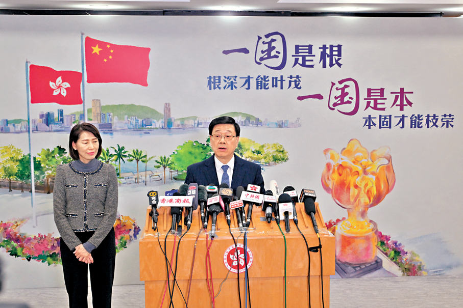 李家超強調,他會繼續帶領團隊,統籌發展和安全,深化改革,發揮香港背靠祖國、聯通世界的獨特優勢,深化國際交往合作,發展經濟,改善民生,確保香港長期繁榮穩定。