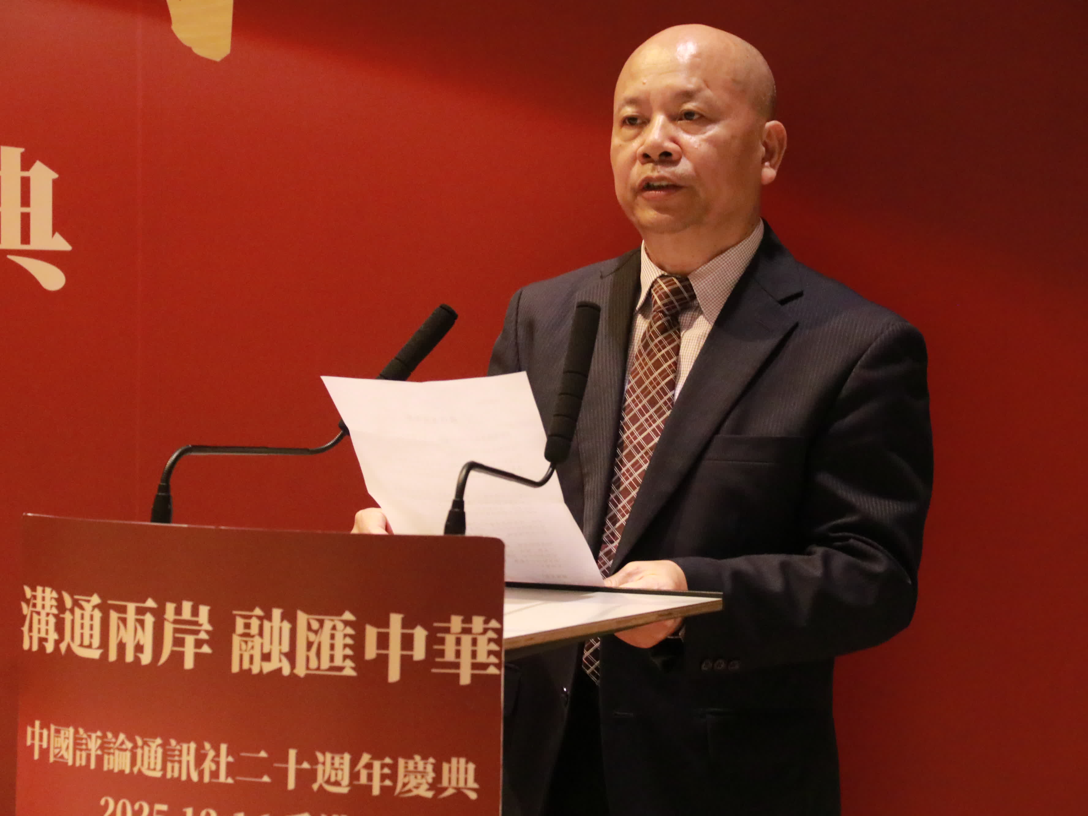 中評社總編輯羅祥喜代表中評社致謝辭時表示,向各位嘉賓、朋友,致以最衷心的感謝和最崇高的敬意。他說,回望二十年崢嶸歲月,我們感恩汪道涵會長高瞻遠矚的創社指引,感恩郭偉峰創社社長篳路藍縷的開拓奉獻;我們更銘記,二十年風雨兼程,每一步成長都離不開兩岸四地各界朋友的鼎力相助。