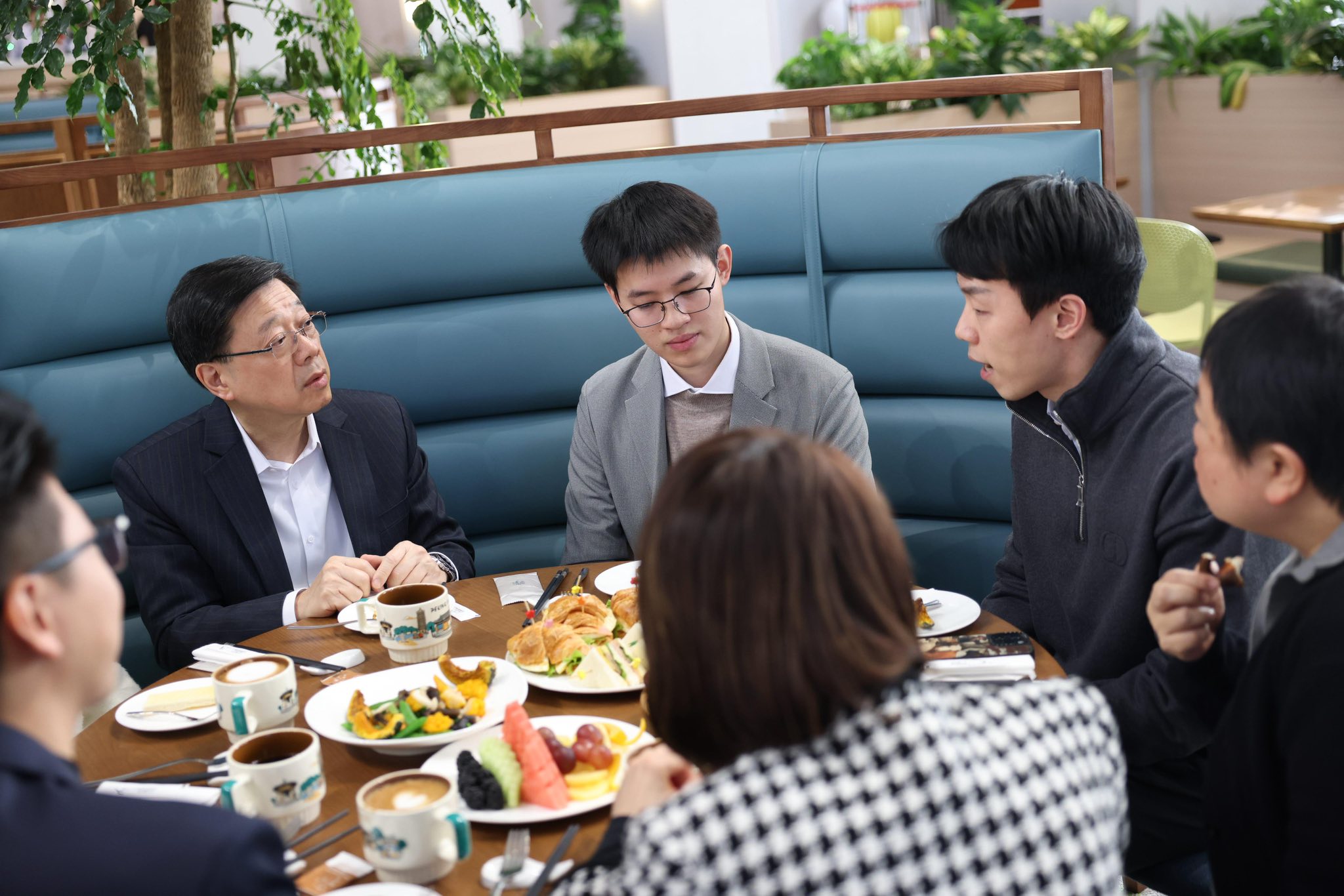行政長官李家超昨日(16日)在北京向國家主席習近平述職。今日早上,他與四位在北京讀書或工作的香港青年共晉早餐,他們都擁有創新科技範疇的專業背景。