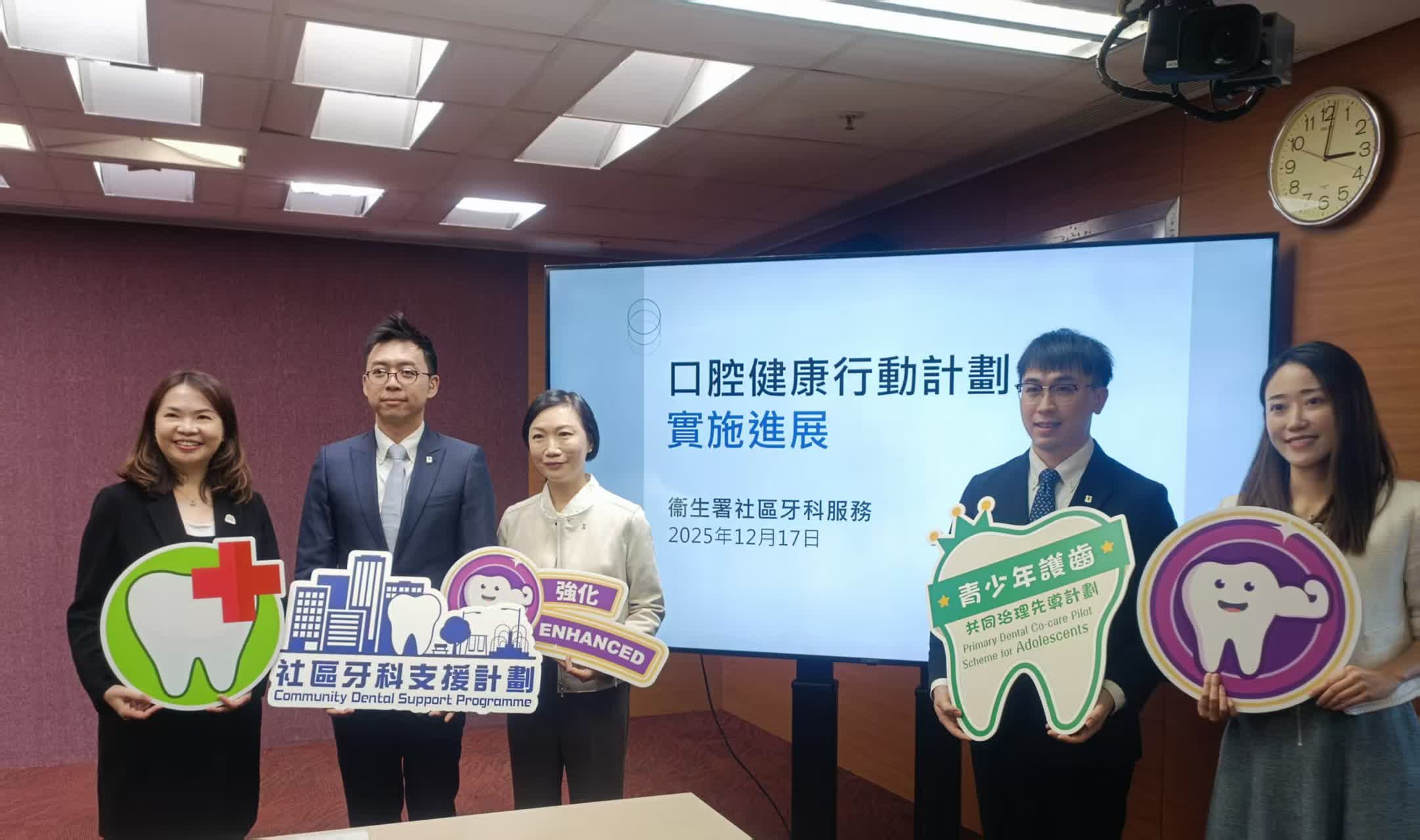 香港文匯報訊(記者 張茗)衛生署今日(17日)公布口腔健康行動計劃進度,包括牙科街症網上登記系統、青少年護齒共同治理先導計劃及社區牙科支援計劃的實施成效,並宣布2026年1月1日起推出社區牙科支援計劃強化版,擴大服務範圍及受惠對象,包括新增無家者為受惠群體,同時由該計劃接替即將停止的關愛基金長者牙科服務資助項目等,以落實「重預防、早發現、早治療」的口腔健康政策方針。