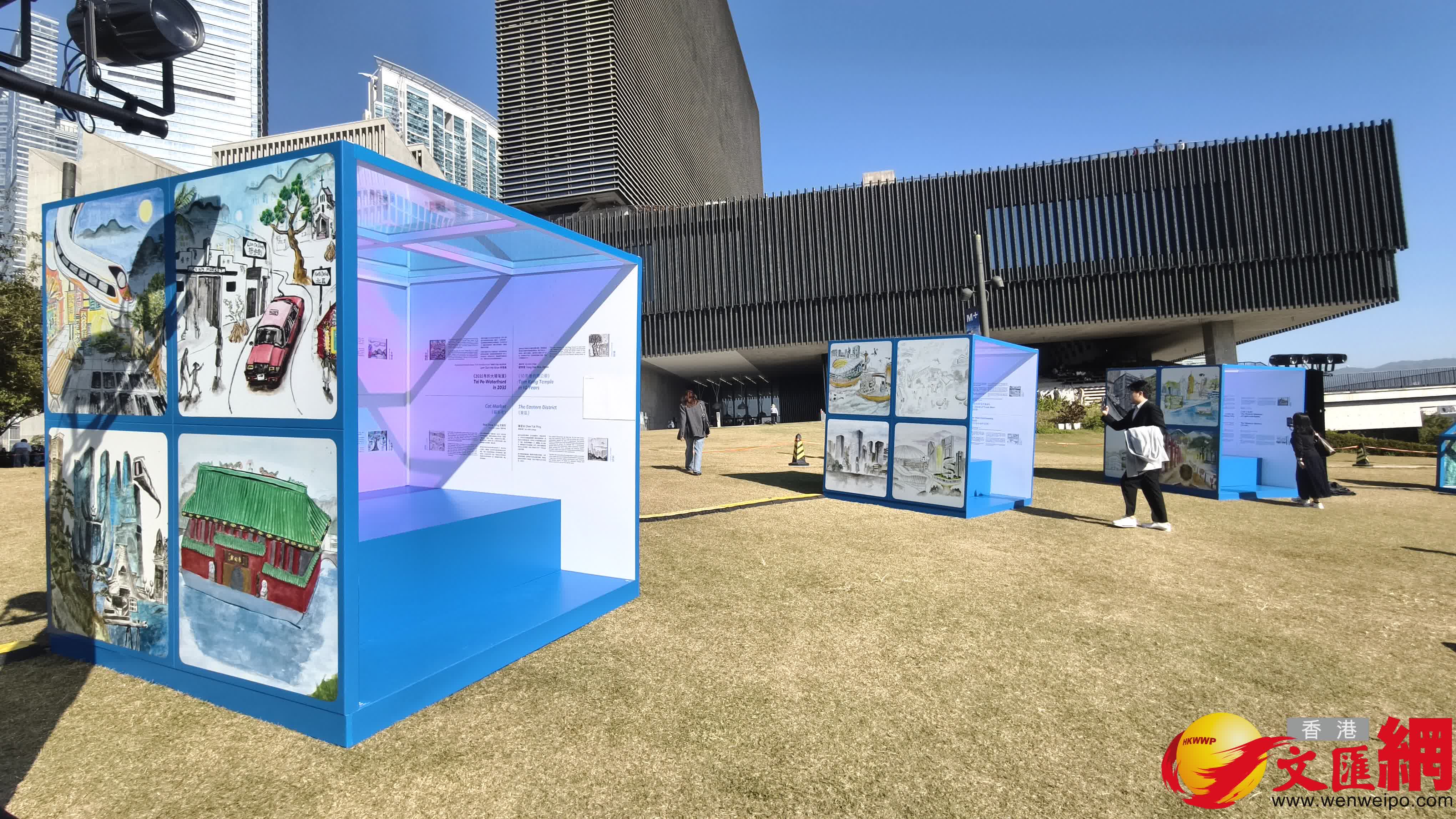 而在藝術公園高草坪上的「拼出未來」城市藝術休憩空間中,五個巨型扭計骰正展示學生們的六十幅原創作品。李嘉欣表示,扭計骰的每一塊都在講述不同的故事,但它們又互相影響。「現在很多年輕一代都非常欣賞傳統的東西,不像我們以為的只關注電子產物。很多人也都在探索融合傳統和未來的方法。」