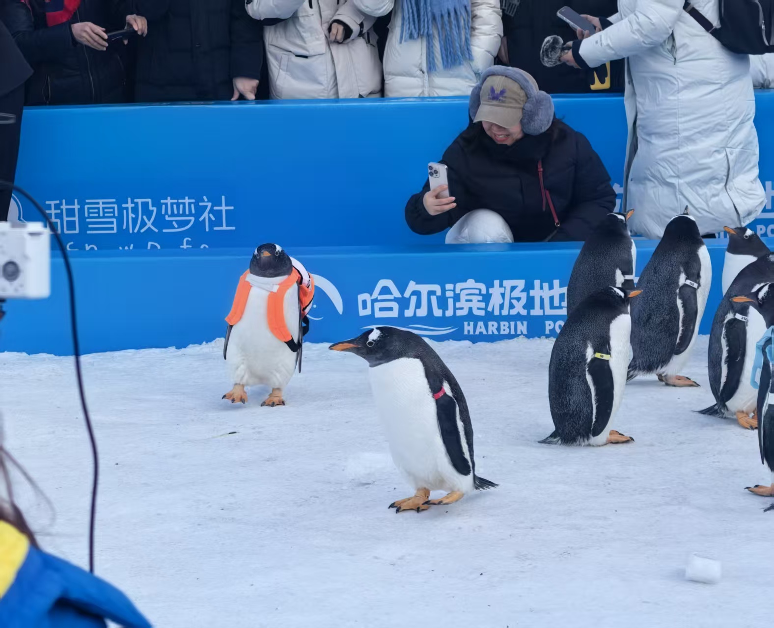 据相关负责人介绍,为迎接冰雪季,哈尔滨极地公园今年提前开启规模最大的“淘学企鹅”冰雪巡游,不仅将巡游启动日期从往年12月底提前至11月初,巡游企鹅数量也从20只大幅提升至50只,吸引全国各地游客慕名而来。