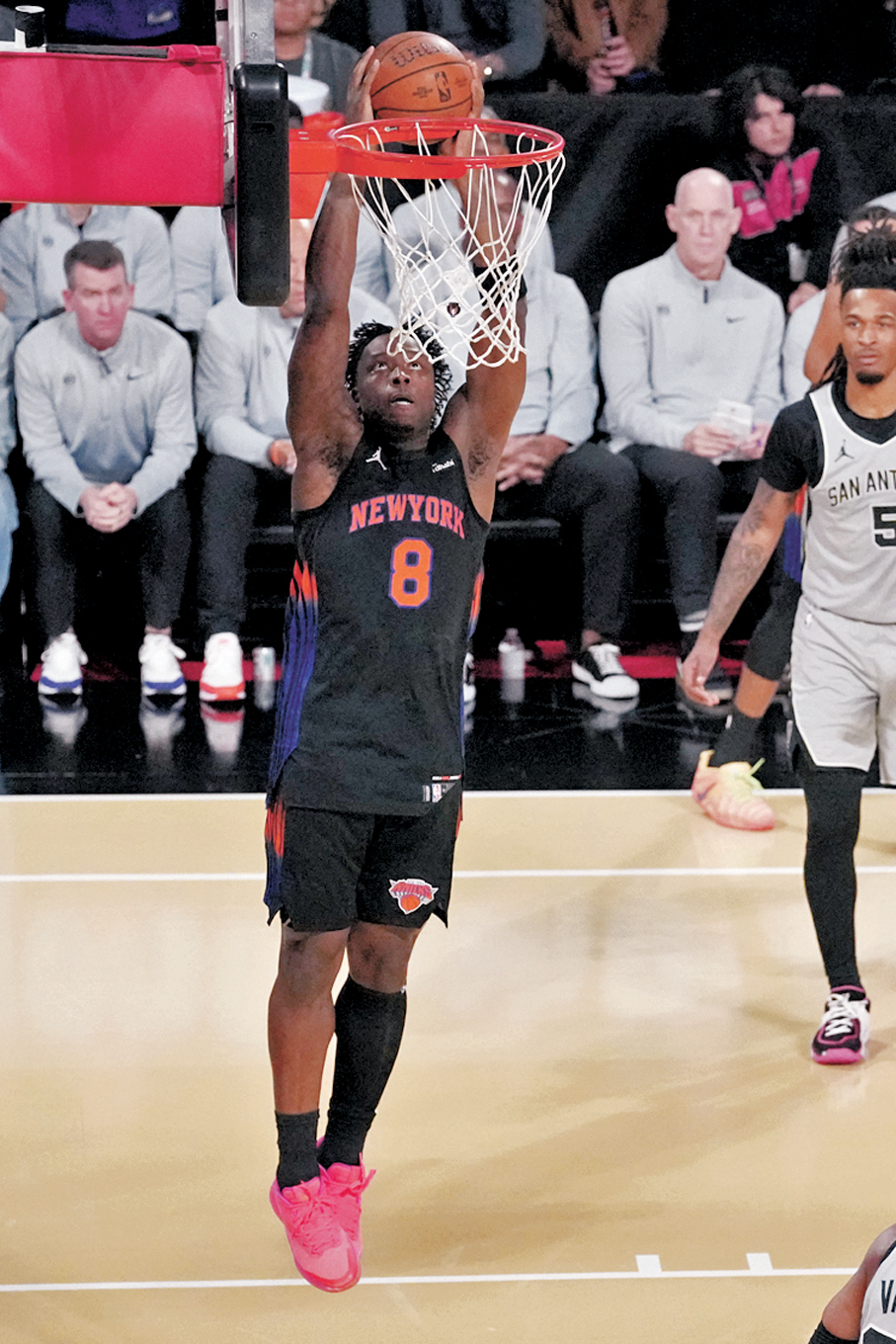 香港文匯報訊(記者 郭正謙)NBA盃決賽錄得28分及9籃板,28歲的阿奴諾比今季從「防守專家」化身成紐約「進攻奇兵」,主帥布朗的「five out」戰術令這位英國球員獲得大量起手機會,而他亦以出色的進攻效率作為回報,成為紐約人空間化進攻的關鍵拼圖。