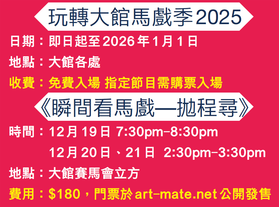 聖誕新年將至,想不遠遊便欣賞到世界級馬戲藝術嗎?作為大館節慶焦點節目,「玩轉大館馬戲季」於近日開幕,以匯聚多個亞洲首演項目的陣容,為觀眾帶來近距離的當代馬戲體驗。