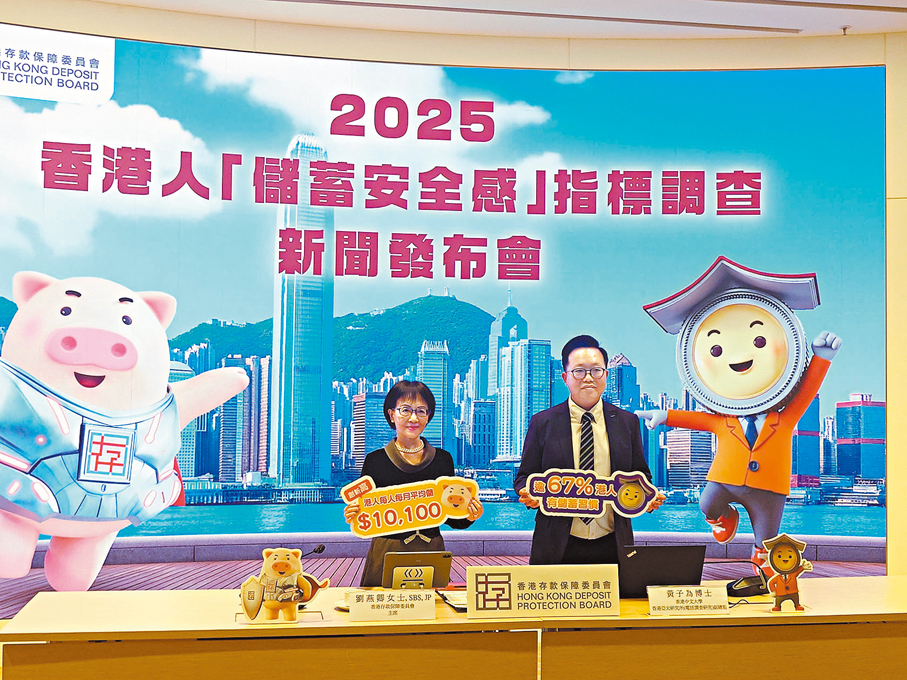 存保會主席劉燕卿昨表示,調查結果反映港人在儲蓄方面保持動力,而且大部分港人持續維持儲蓄習慣,這反映儲蓄始終是港人「安全感」的重要來源,而存款保障計劃自動為存戶提供最高80萬元的法定保障,將令大家可以更加安心地進行儲蓄。