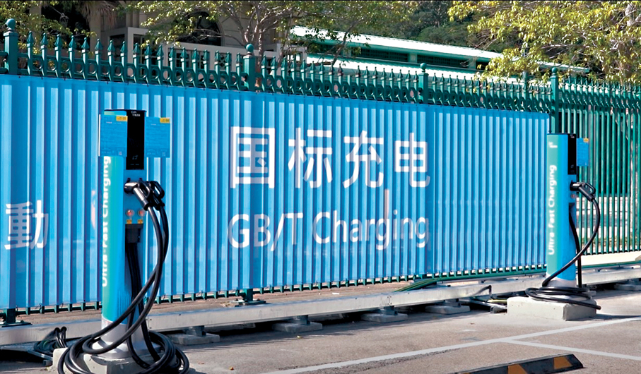 內地電動車輛採用國標充電接口,而香港則通用國際標準,故除特區政府在電動車充電服務上做好配套,於竹篙灣設置充電站外,部分私人停車場亦加設國標的充電樁,其中候任立法會議員、美麗華集團首席營運總裁陳宗彝日前在電台節目上便表示,旗下酒店商場已做好準備,200個車位中首批25個已安裝充電樁,提供國標與歐標轉接器供旅客使用。