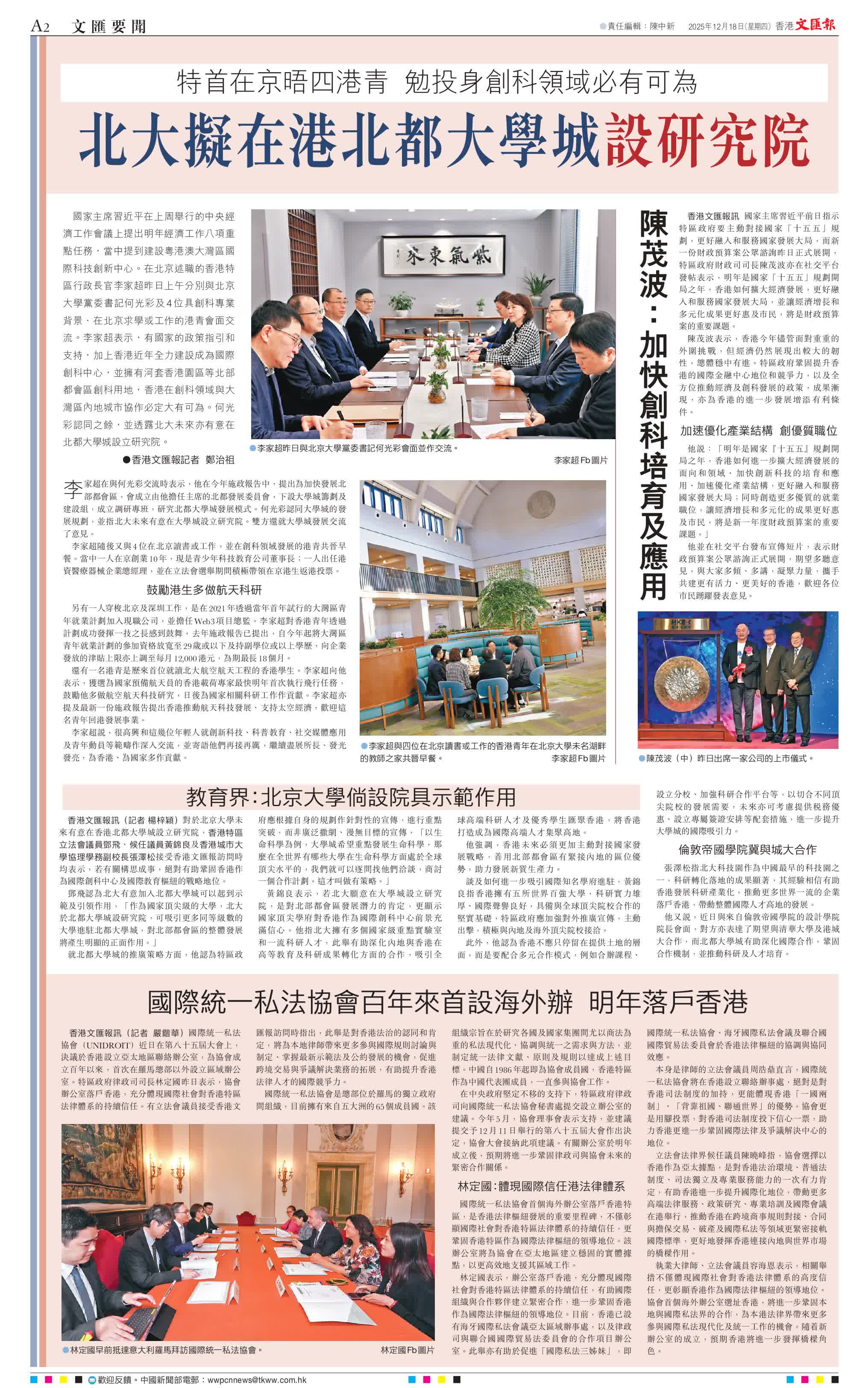 張澤松指北大科技園作為中國最早的科技園之一,科研轉化落地的成果顯著,其經驗相信有助香港發展科研產業化,推動更多世界一流的企業落戶香港,帶動整體國際人才高地的發展。