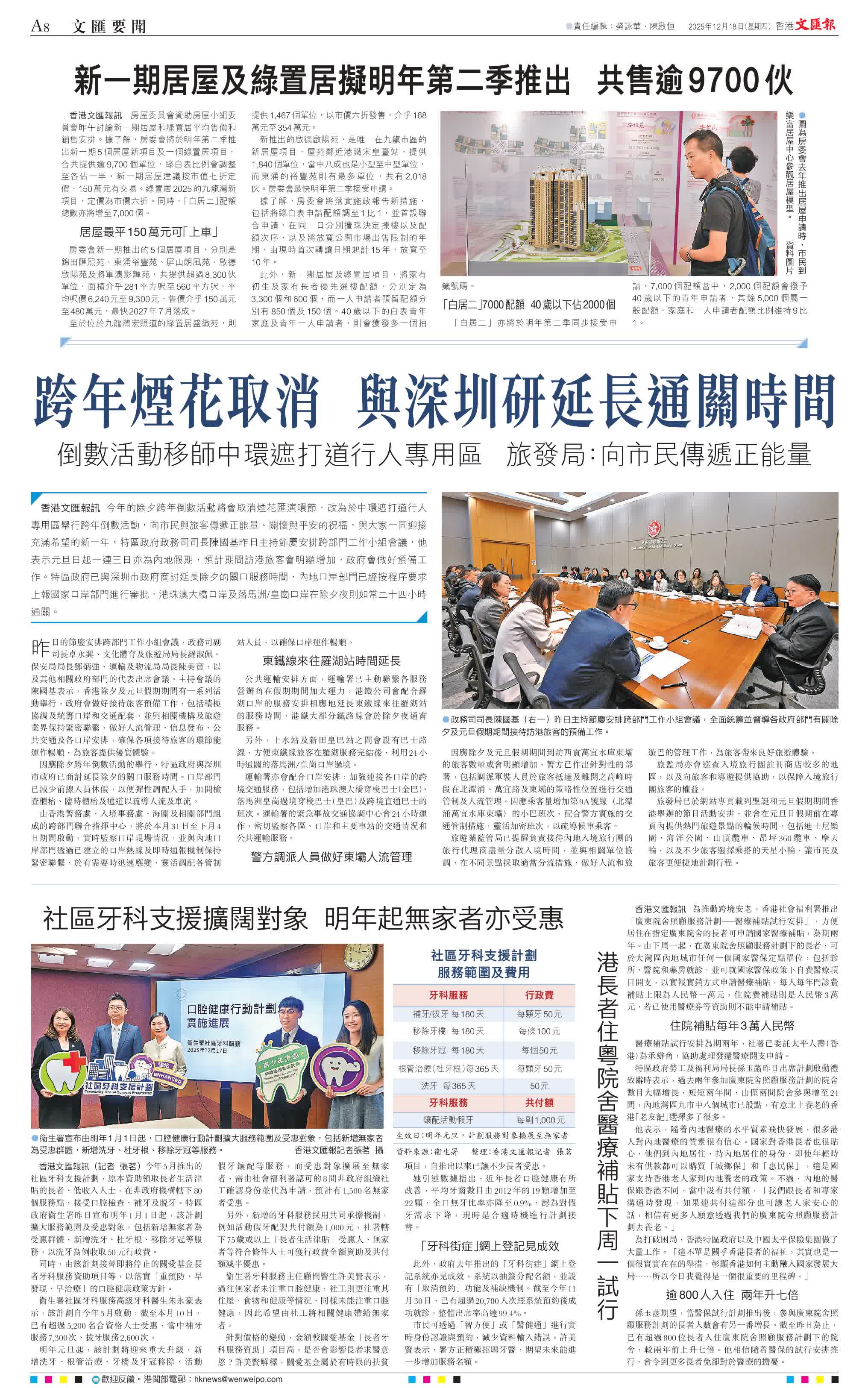 昨日的節慶安排跨部門工作小組會議,政務司副司長卓永興、文化體育及旅遊局局長羅淑佩、保安局局長鄧炳強、運輸及物流局局長陳美寶,以及其他相關政府部門的代表出席會議。主持會議的陳國基表示,香港除夕及元旦假期期間有一系列活動舉行,政府會做好接待旅客預備工作,包括積極協調及統籌口岸和交通配套,並與相關機構及旅遊業界保持緊密聯繫,做好人流管理、信息發布、公共交通及各口岸安排,確保各項接待旅客的環節能運作暢順,為旅客提供優質體驗。
