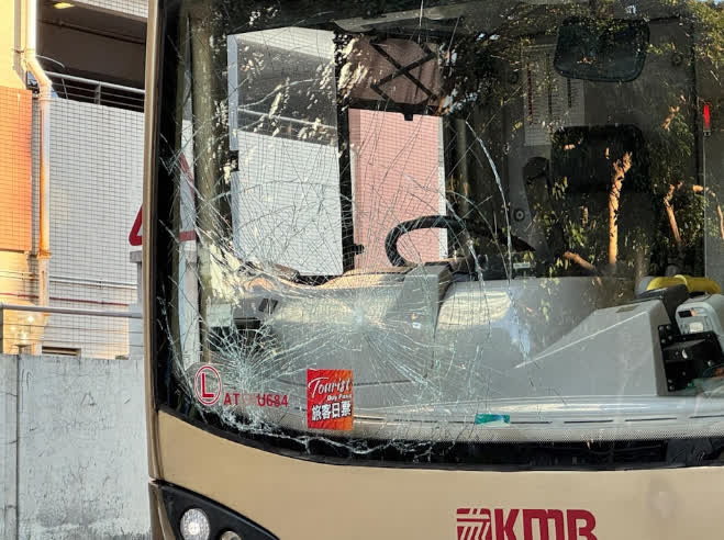 今(18日)早,一輛九巴途經石硤尾南昌街250號、往深水埗方向行駛時撞倒兩名過路女學生。救援人員接報到場,二人清醒腳受傷,經由救護車送往明愛醫院治理。現場可見,涉事九巴右邊車頭擋風玻璃現「蜘蛛網」狀裂痕。
