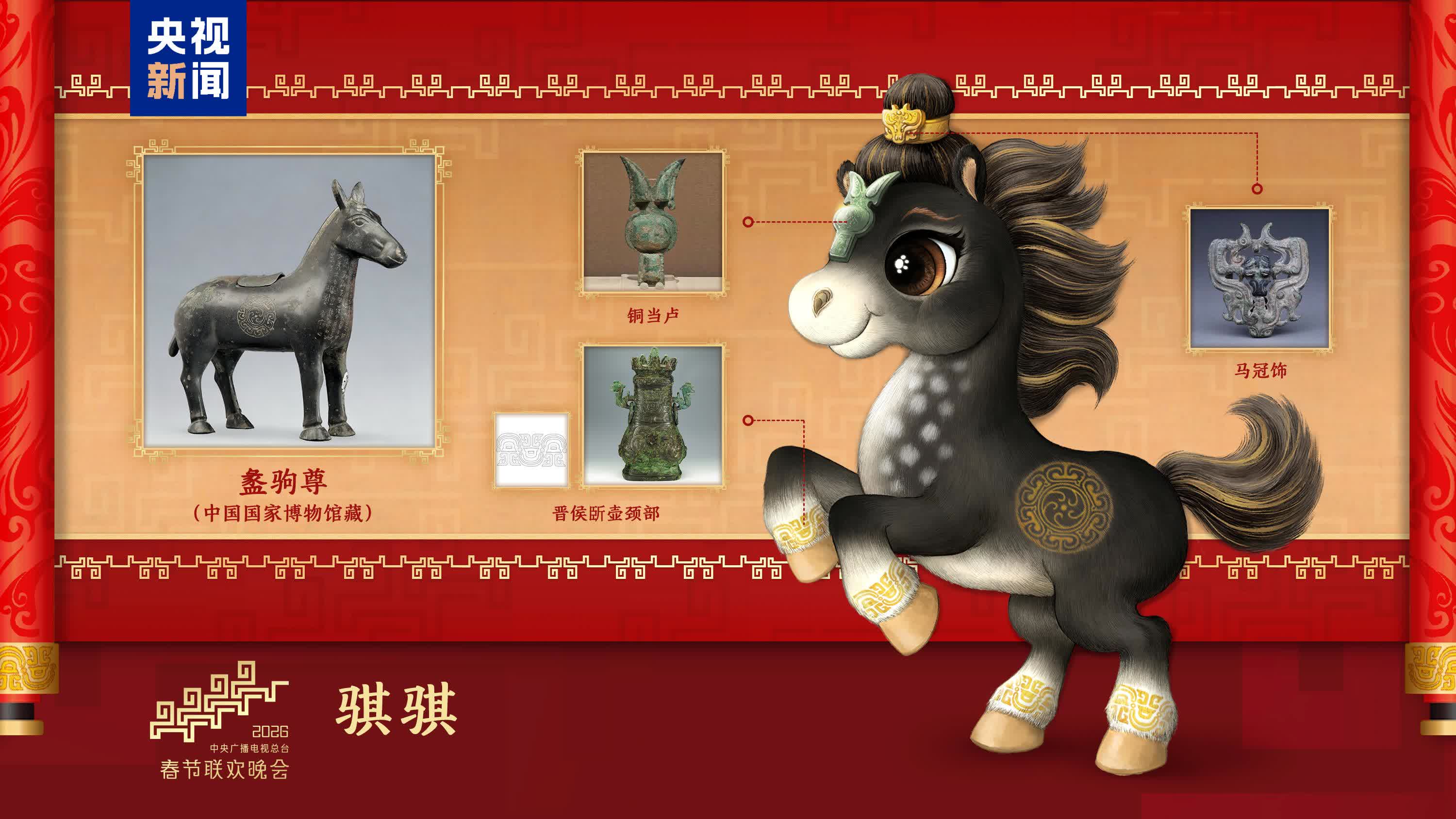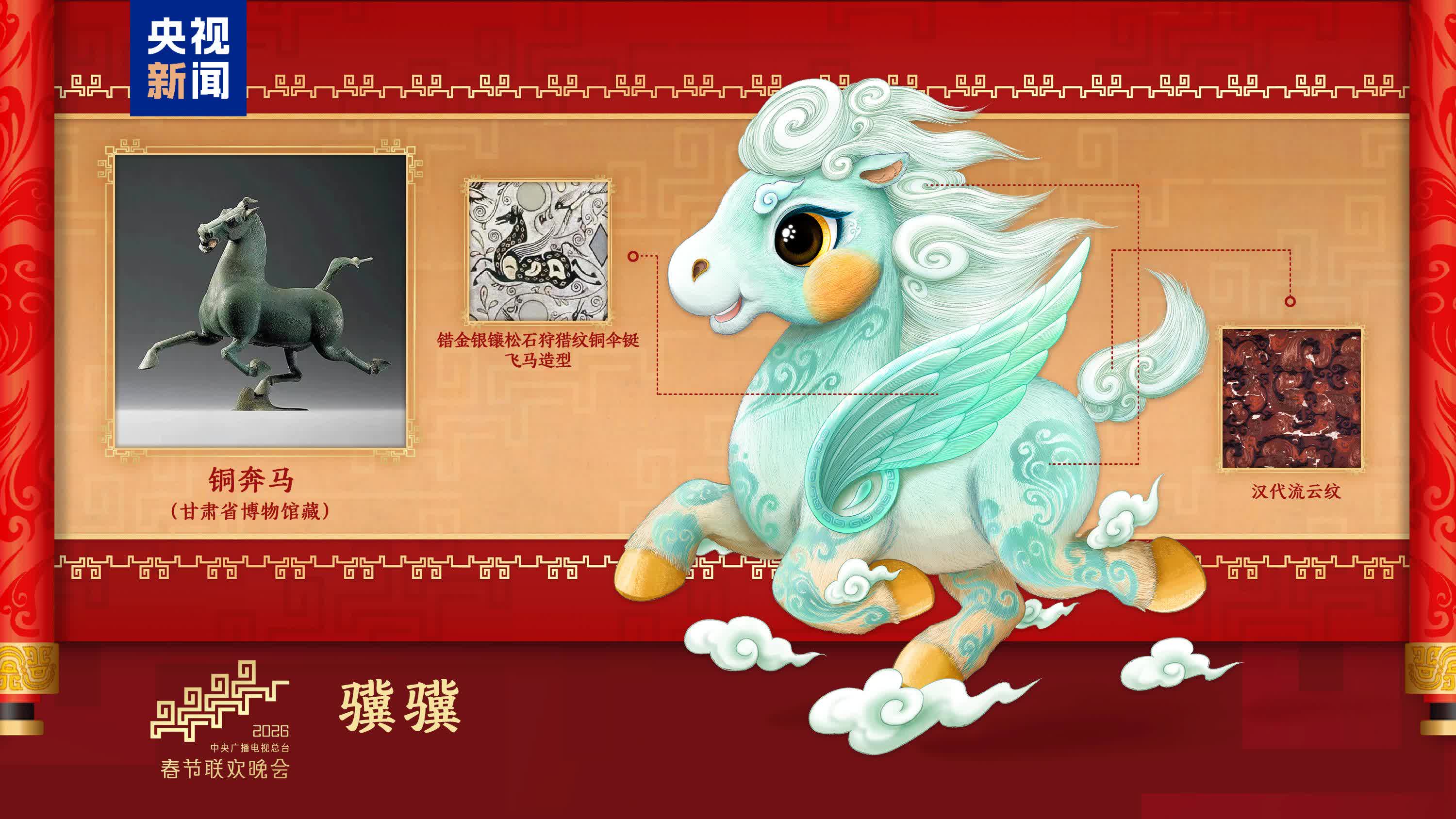 四匹駿馬齊亮相,騏驥馳騁踏新程!12月18日,中央廣播電視總台《2026年春節聯歡晚會》發布吉祥物形象。「騏騏」「驥驥」「馳馳」「騁騁」四匹駿馬,活潑可愛、意氣風發,與晚會主題「騏驥馳騁 勢不可擋」一脈相承、相得益彰。吉祥物的設計靈感來源於中國不同時期馬的經典形象,並將流雲紋、山雲紋等千年紋樣「穿」上身,充盈着生生不息的歷史美感和萬象更新的時代氣象,飽含馬到成功、前程似錦的美好寓意。