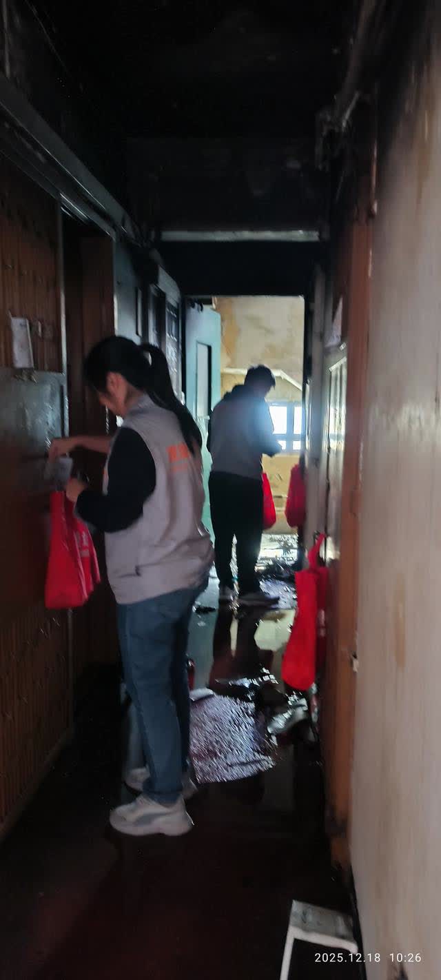 因應美安樓火警,康樂關愛隊抵達涉事單位探望居民,不適夫婦已無大礙,有居民求助安排臨時住宿,關愛隊已向民政當局反映。