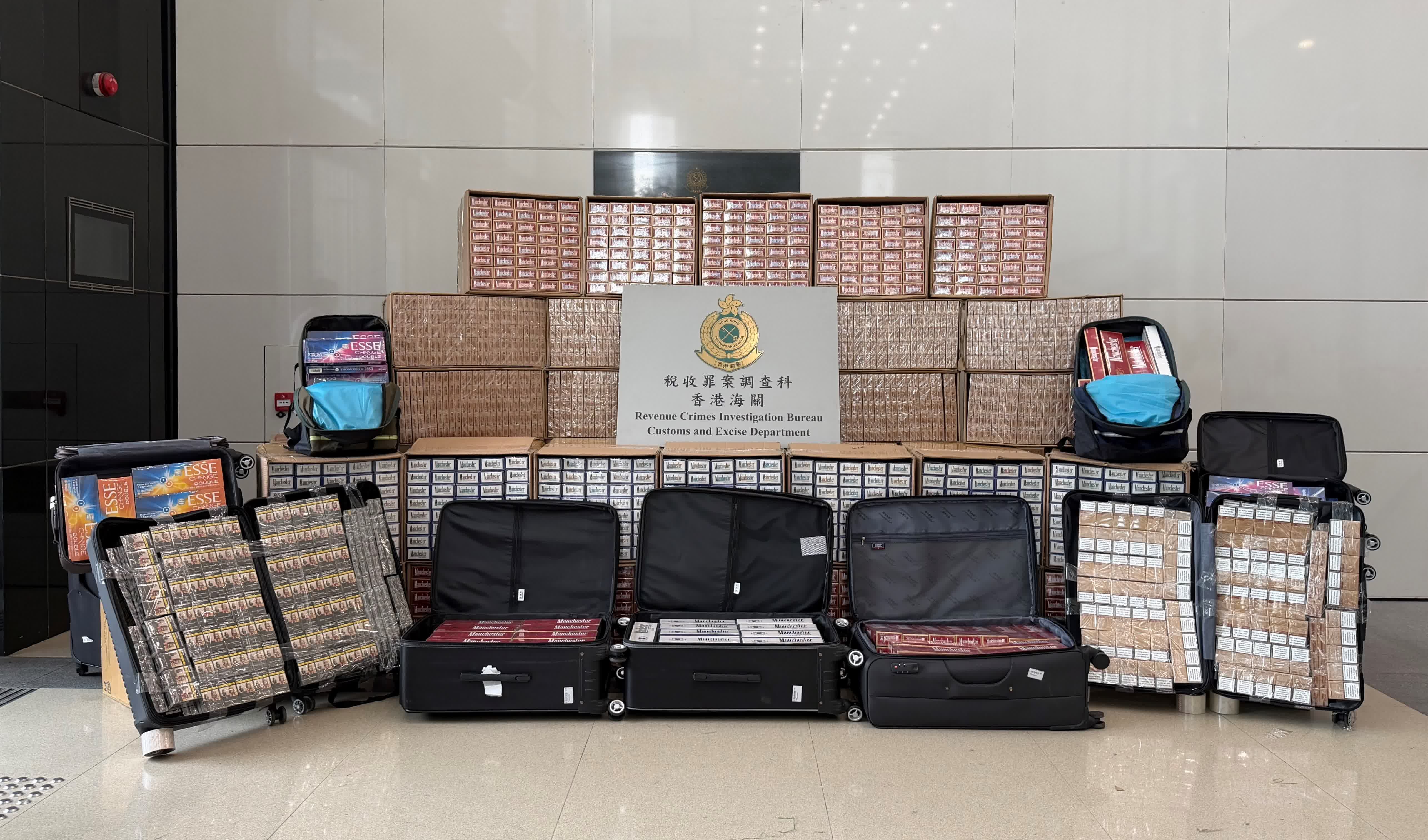 海關稅收罪案調查科稅收調查第二組指揮官蔡俊威表示,新修訂的應課稅品條例在今年9月新效,涉及未完稅煙草相關的罰則已經修訂,由以往最高罰款100萬元及監禁兩年,增加至目前最高罰款200萬元及監禁7年。同時,海關留意到犯罪集團利用入境旅客帶私煙入境,因此,稅收調查科聯同機場科展開連串執法行動┌
