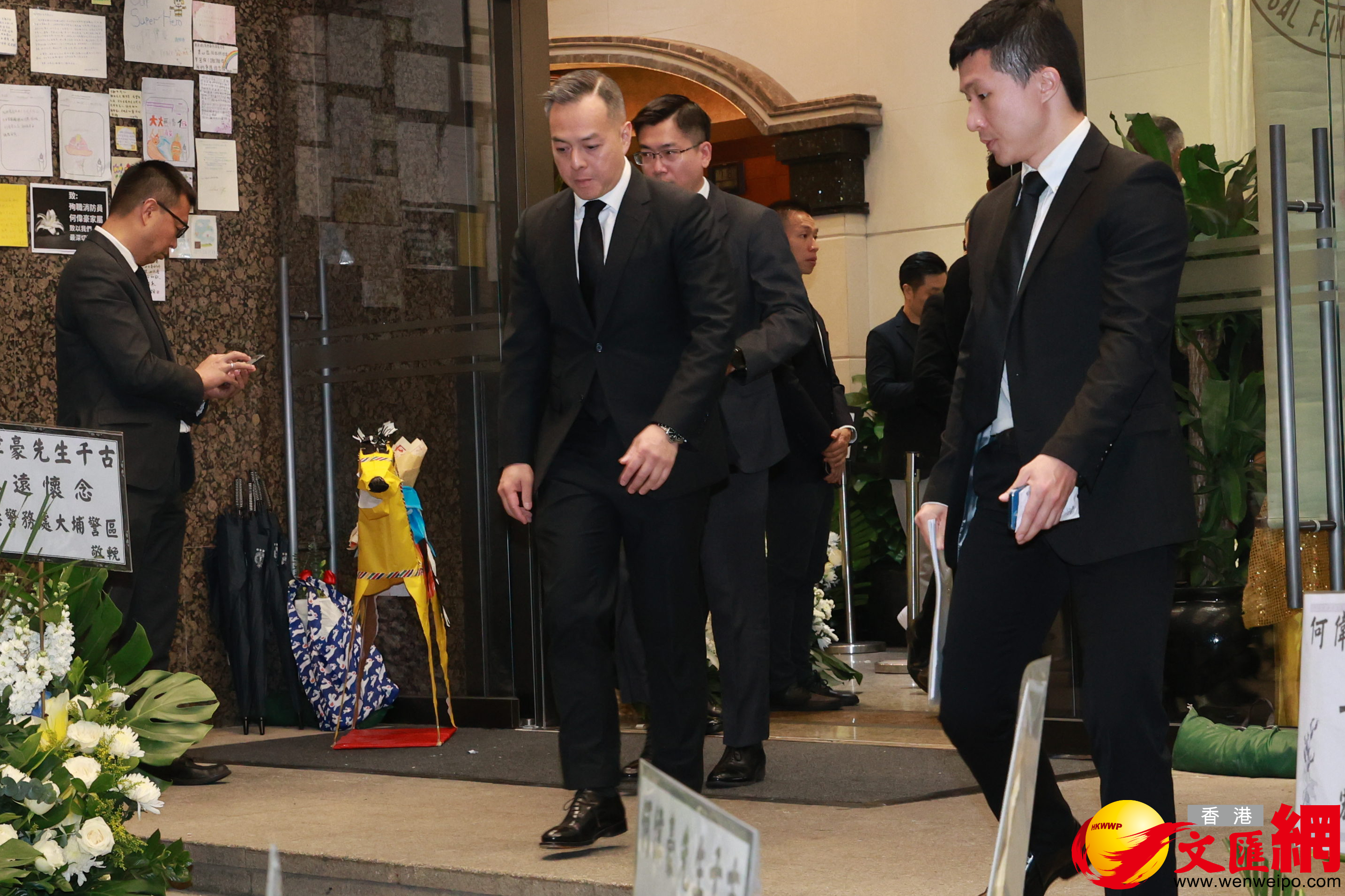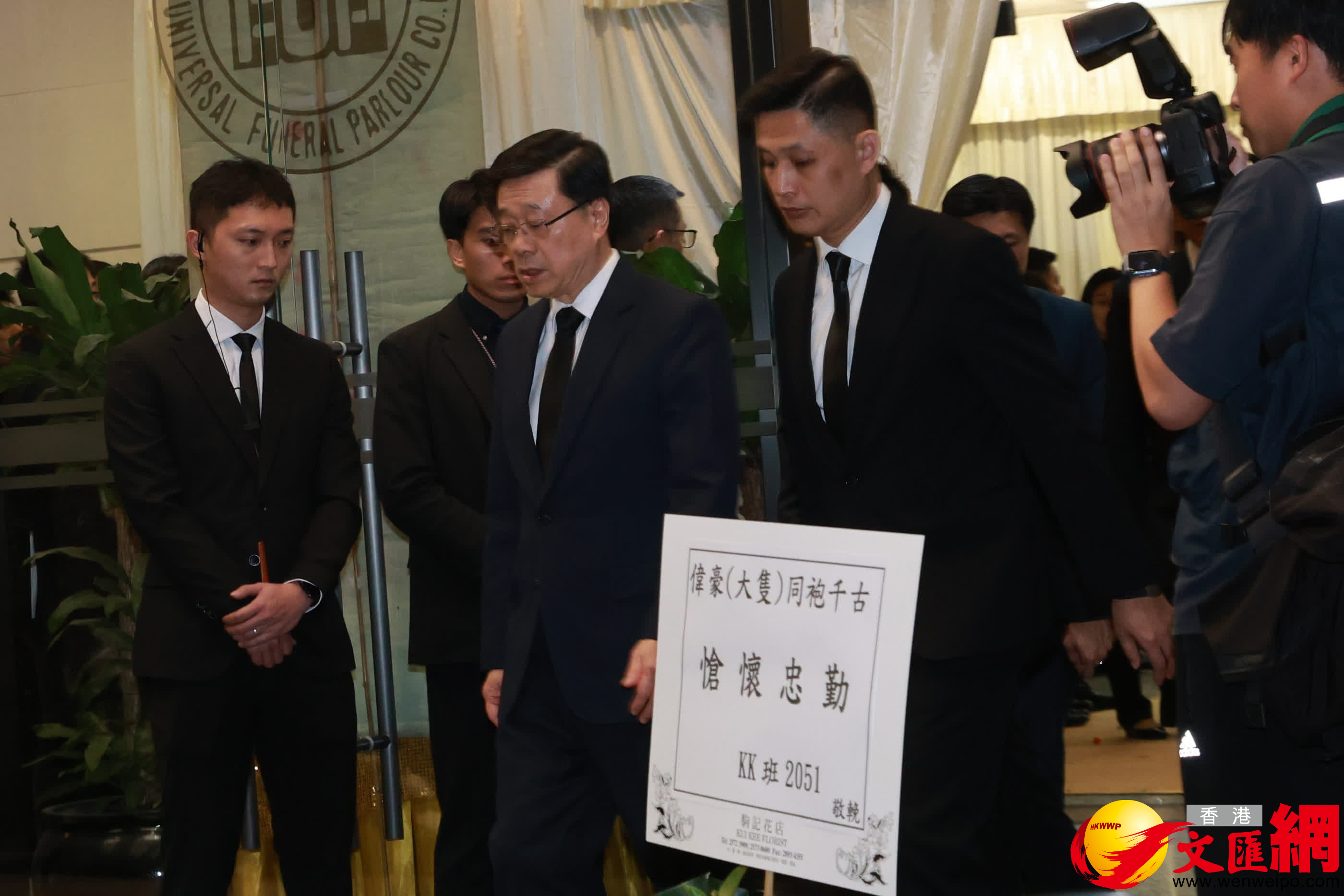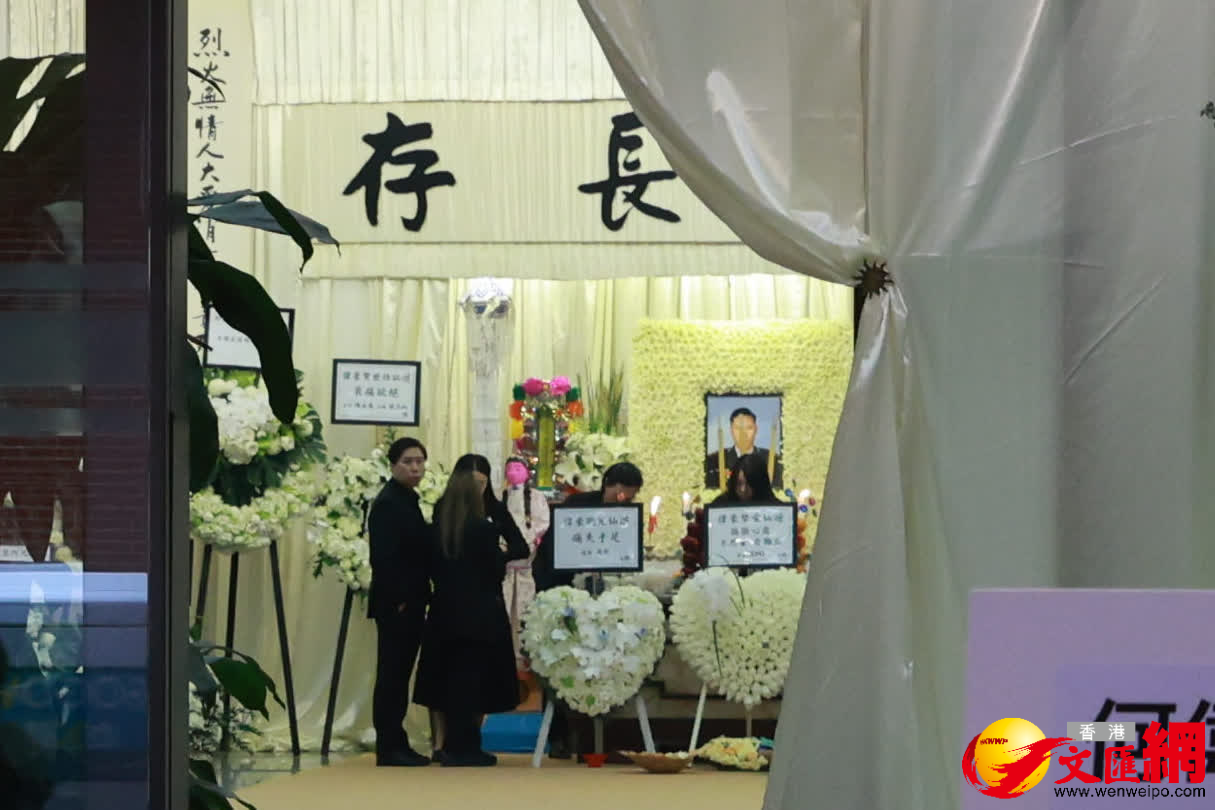 行政長官李家超、一眾司局級及官員等,在傍晚起陸續抵達靈堂致祭。靈堂外擺放政府各部門及社會各界致送的花圈,包括勞工處、消防處、勞福局、懲教署、民政事務署等,同時亦擺放了不少大埔街坊,特別是宏福苑的居民亦送上心意,留言願「一路走好」。