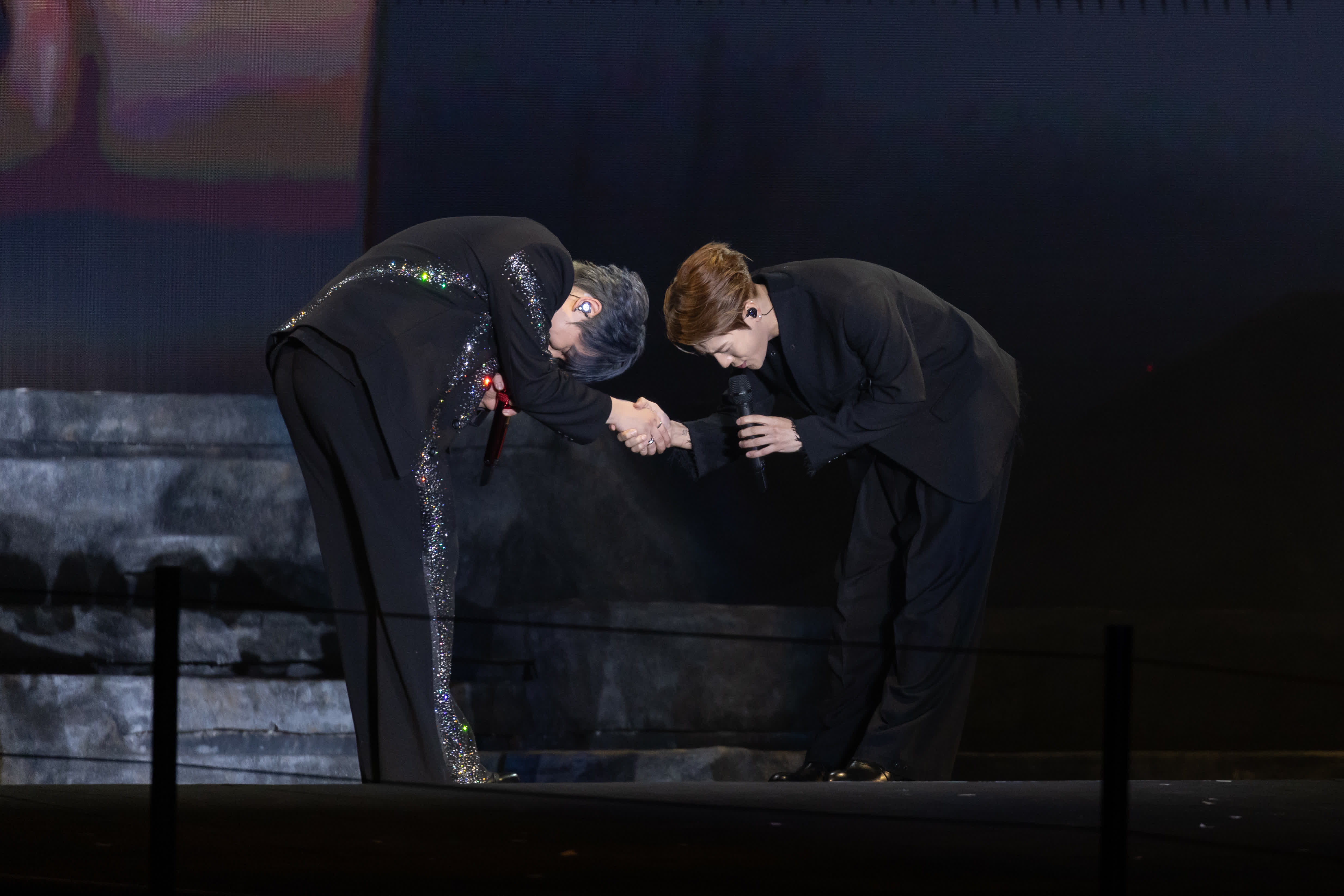 互動環節更揭開兩人的深厚情誼。姜濤興奮表示能與Jackson同台演出感覺如做夢,而Jackson自我介紹後就向姜濤打趣說:「多謝你的邀請,我很榮幸見到你同你嘅『愛人』。」逗樂全場。Jackson自揭與姜濤是「網友」關係,姜濤則難掩感激之情公開二人相識的經過:「我記得大概在幾年前,Jackson Wang老師已經在Ig DM我(發訊息給我),對我說了很多鼓勵的話,我到現在還記得。」Jackson聞言表示:「因為我覺得,我哋真係一齊度過風風雨雨、高高低低。真正愛你的人、愛我的人,我希望你們可以長長久久。」足見Jackson對姜濤的關懷與支持。語畢,二人再合唱姜濤的《Every Single Time》,Jackson難得獻唱粵語歌,令在場觀眾都聽得如癡如醉。