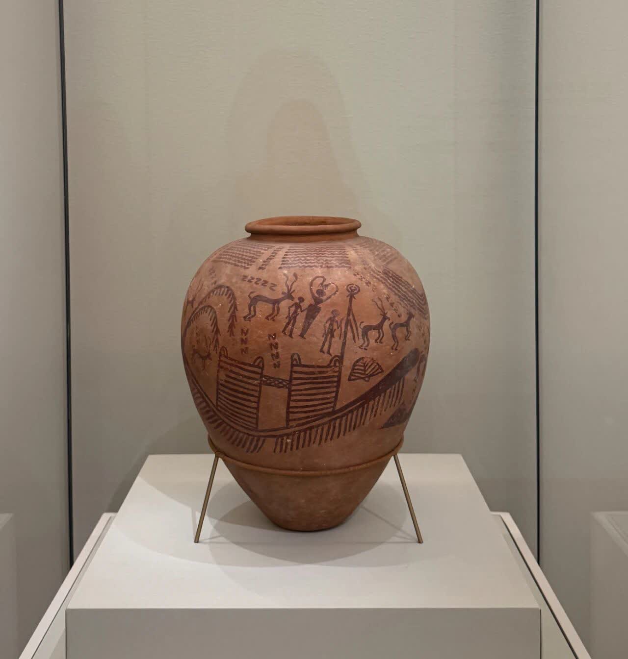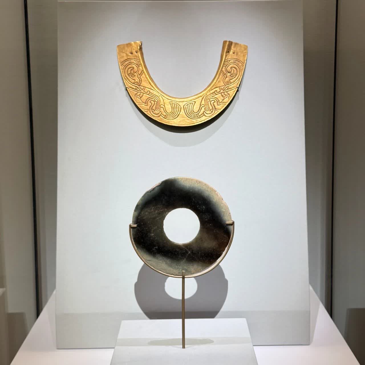 漩渦紋是馬家窯彩陶最具標誌性的紋飾之一。它以流暢的弧線構成層層旋轉的波紋,常與同心圓、波浪紋組合,形成動態的視覺韻律。黃河上游先民依賴水利農耕,漩渦紋既是對水資源的讚美,也隱含對洪水的敬畏。齊家文化玉璧是中國新石器時代晚期至青銅時代早期的一種重要玉器。玉璧在齊家文化中應用廣泛,可作為權力等級的標誌,既可以佩戴,也可以隨葬,同時還是部落、聯盟、權貴交往中的饋贈品、信物,也是財富和地位的象徵。香港故宮文化博物館收藏的鳥紋胸飾,是公元前4至公元前3世紀的黃金製品,採用錘揲工藝製成。