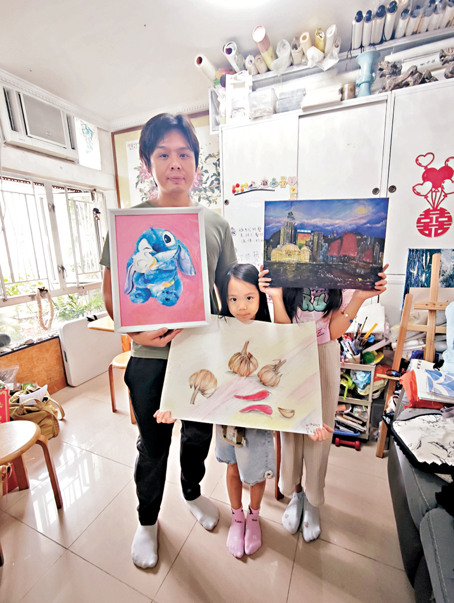 「當然亦希望他們將愛好變事業就更好。兒子鈞陶、女兒鈞瑜自小跟隨我學畫國畫(水墨),亦有跟其他老師學西畫(油畫),所以畫中國畫和西洋畫已經有十多年的基礎。如今女兒鈞瑜在荃灣開畫室(點線面藝術教育)教小朋友畫畫,可以學以致用變成事業,我都很安慰,有時也去幫她教學生。我也習畫提升自己,為日後開畫展作準備,相信一生離不開畫畫。」