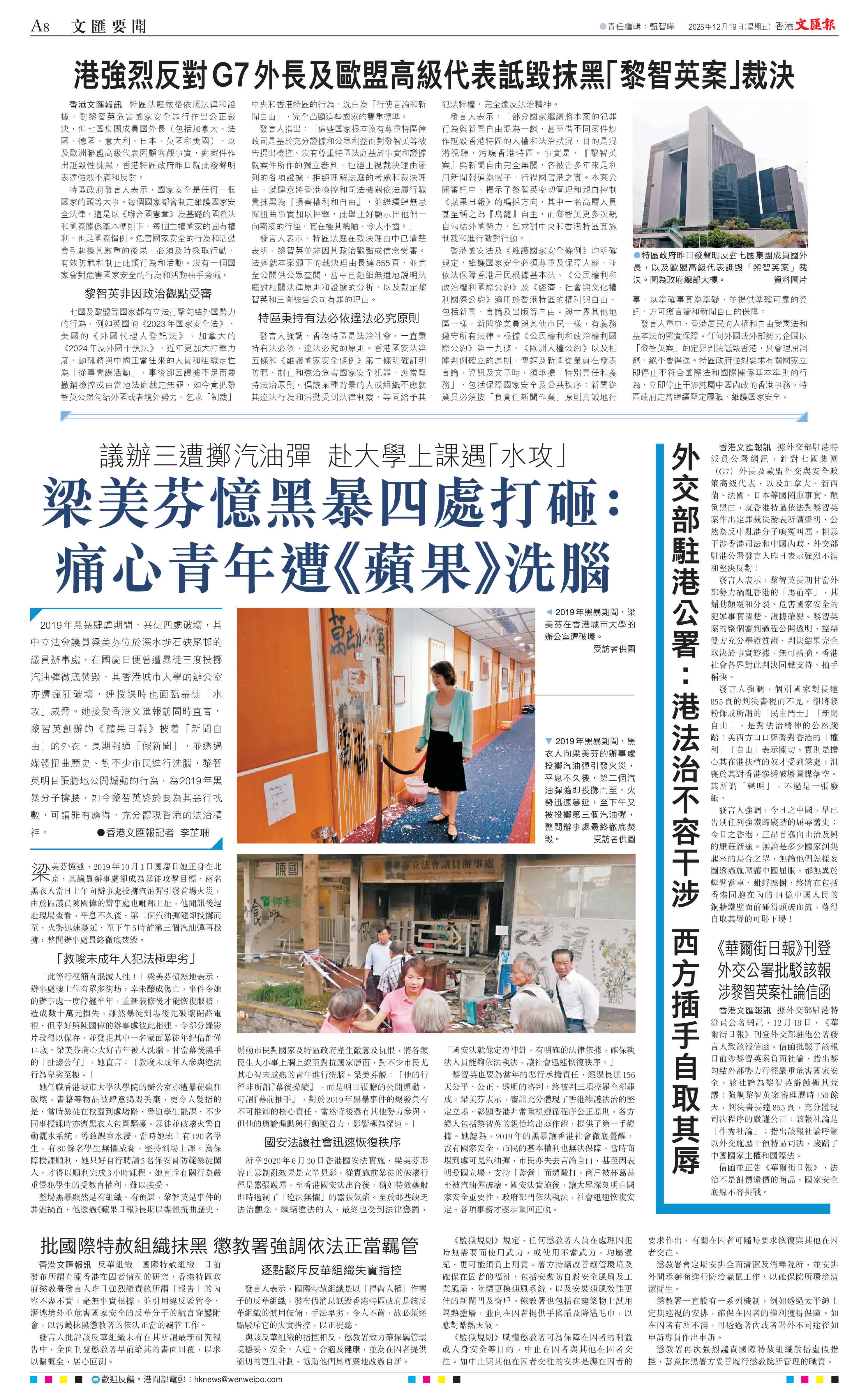 (香港文匯報記者 李芷珊)2019年黑暴肆虐期間,暴徒四處破壞,其中立法會議員梁美芬位於深水埗石硤尾邨的議員辦事處,在國慶日便曾遭暴徒三度投擲汽油彈徹底焚毀,其香港城巿大學的辦公室亦遭瘋狂破壞,連授課時也面臨暴徒「水攻」威脅。她接受香港文匯報訪問時直言,黎智英創辦的《蘋果日報》披着「新聞自由」的外衣,長期報道「假新聞」,並透過媒體扭曲歷史、對不少市民進行洗腦,黎智英明目張膽地公開煽動的行為,為2019年黑暴分子撐腰,如今黎智英終於要為其惡行找數,可謂罪有應得,充分體現香港的法治精神。