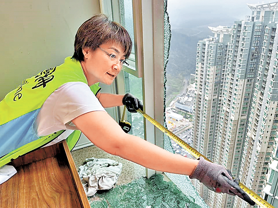 颱風吹爆玻璃 親自為街坊善後