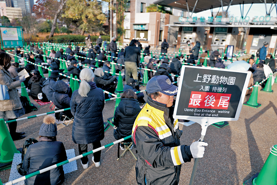 (香港文匯報特約記者 萬汀 東京報道)清晨的日本東京寒意十足,上野動物園尚未開門,門口已排起長隊。大批民眾排隊等待參觀,與大熊貓「曉曉」和「蕾蕾」作最後的告別。