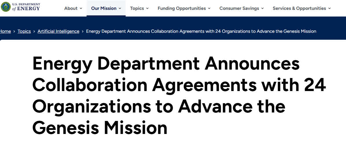 白宮和美國能源部的最新聲明顯示,包括微軟、谷歌、英偉達等在內24家頂尖的人工智能企業已與美國政府簽署協議,加入「創世紀計劃」。該計劃由白宮發起,旨在推動新興技術在科學探索與能源項目中的應用。