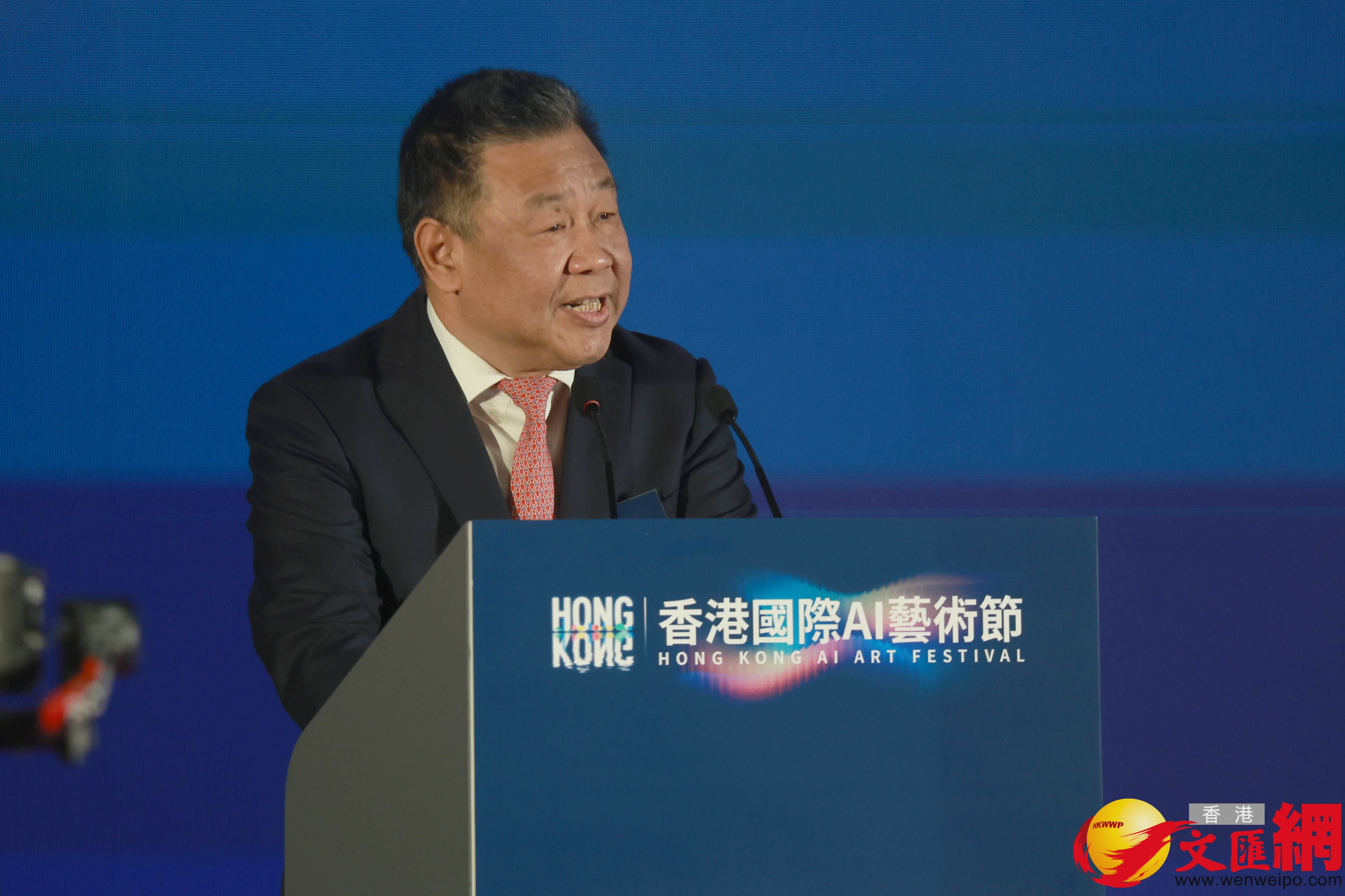 紫荊文化集團董事長許正中致辭表示,香港國際AI藝術節立足香港、面向世界,旨在拓寬科技與藝術的邊界,豐富現實與未來的連接,為來自世界各地的人工智能科技企業打造一個展示新技術、新應用的大平台,為來自世界各地的藝術家打造一個展示新創意、新靈感的大舞台,為來自世界各地的觀眾朋友打造一個新體驗、新場景的大看台。